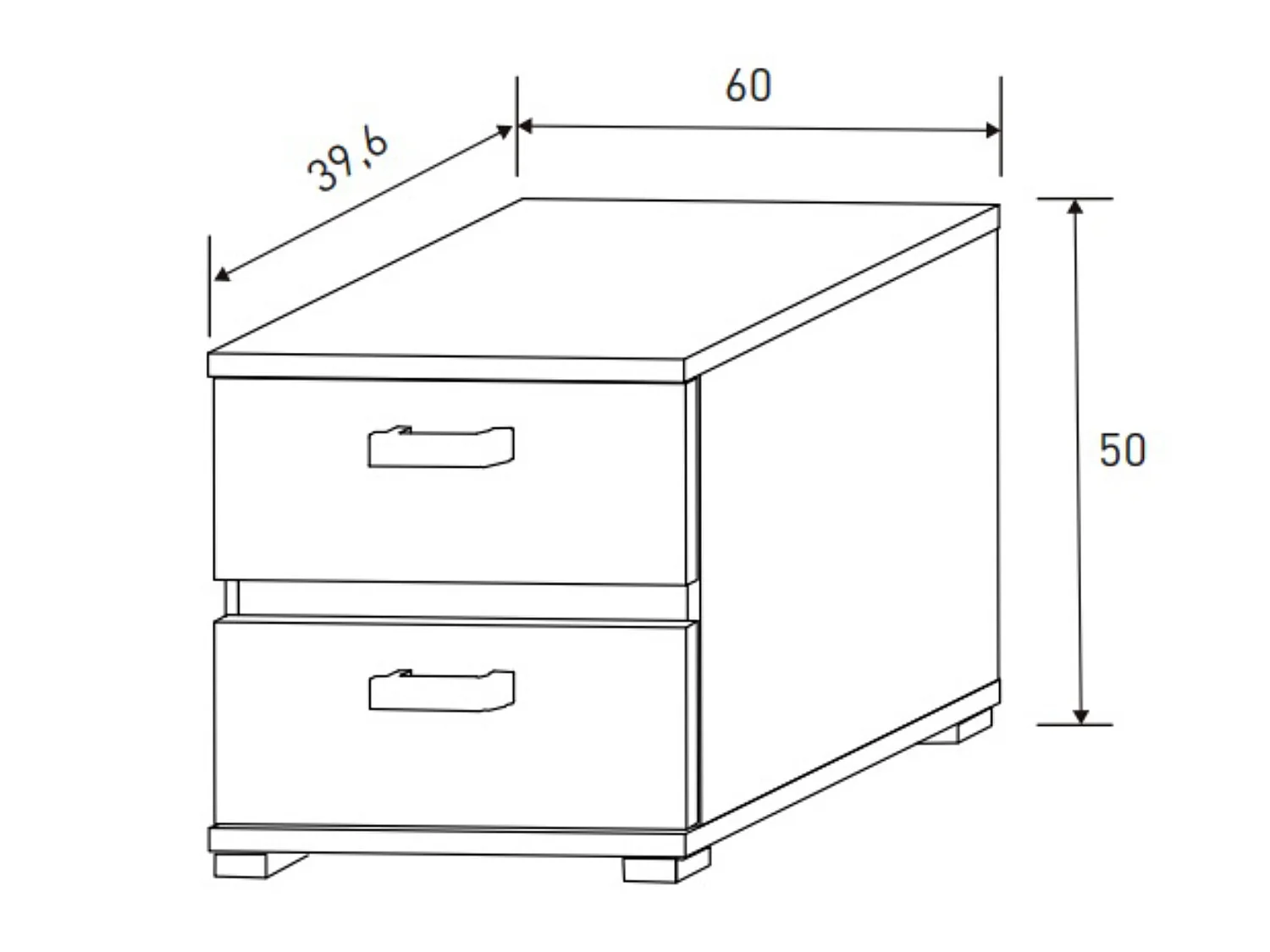 Table de chevet de 3 tiroirs avec pieds coloris Chêne Cambrian / Blanc - longueur 43 x profondeur 35 x hauteur 63 cm