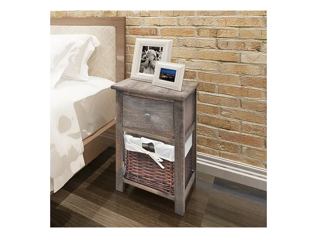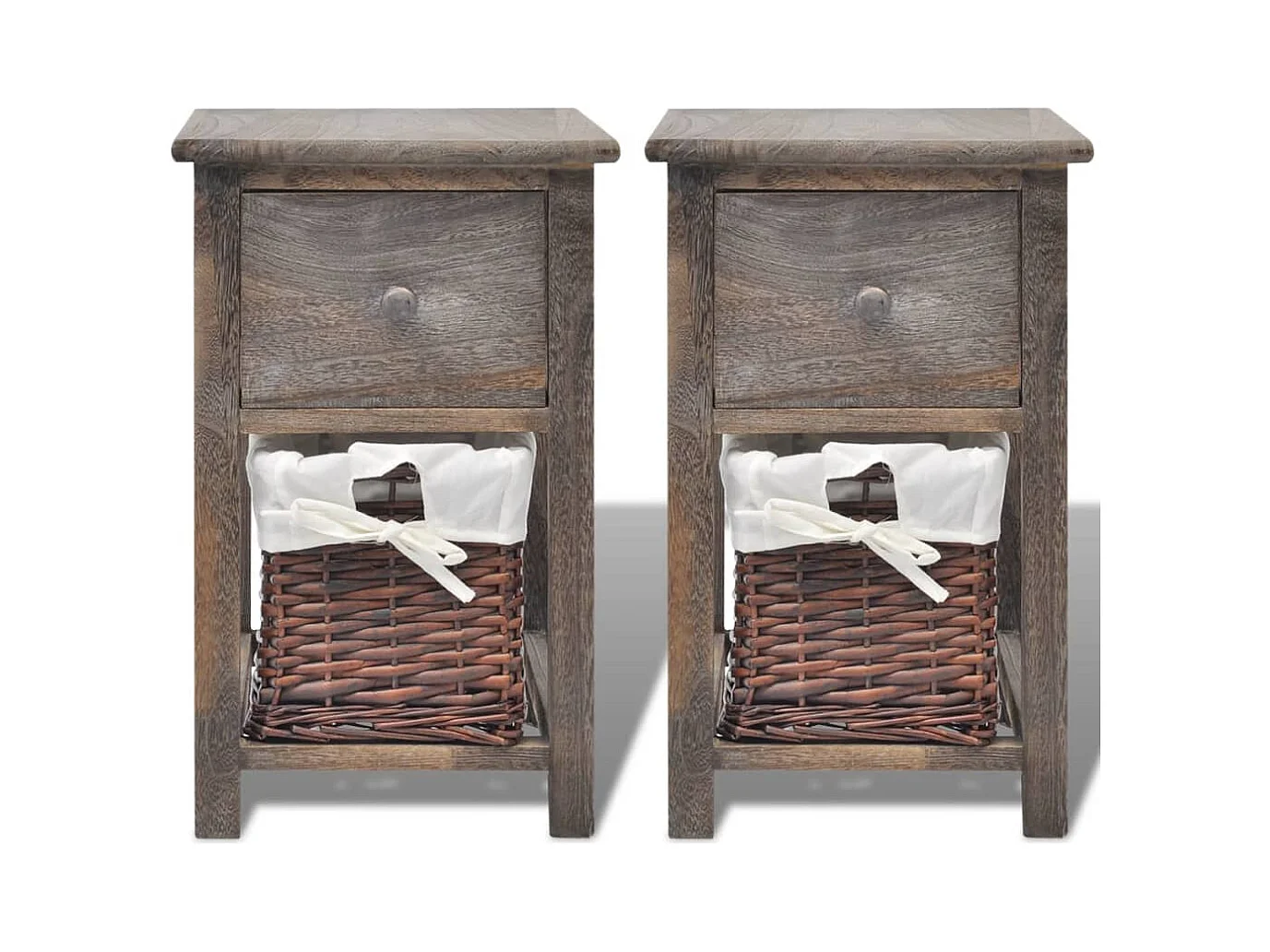 Table de chevet-Tables d'appoint 2 pcs 1xtiroir,1xpanier en osier Bois Marron