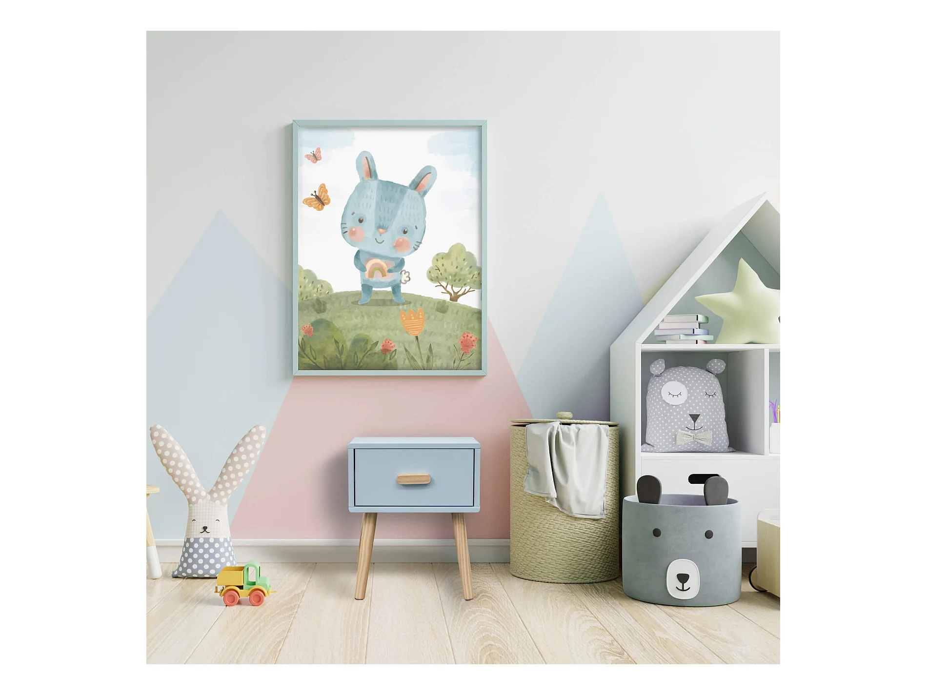 Table de chevet Tazart 44x35x35 MDF Bois Bleu ciel Marron Scandinave