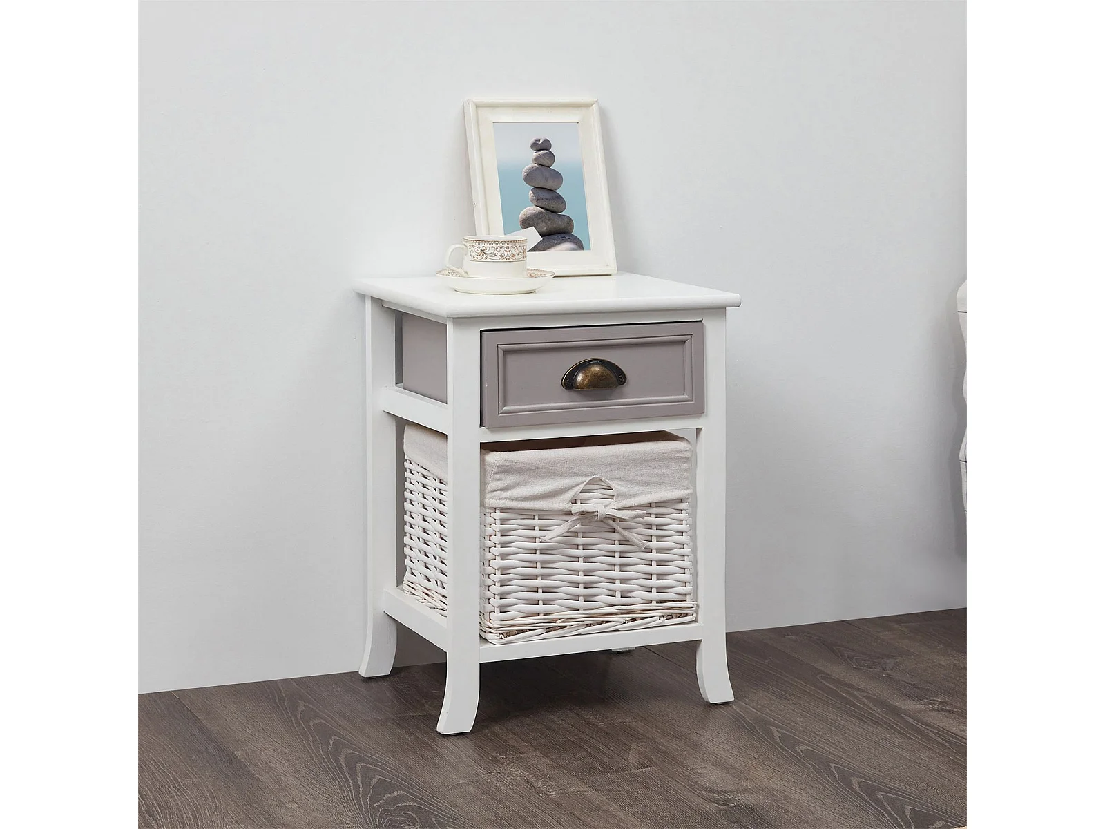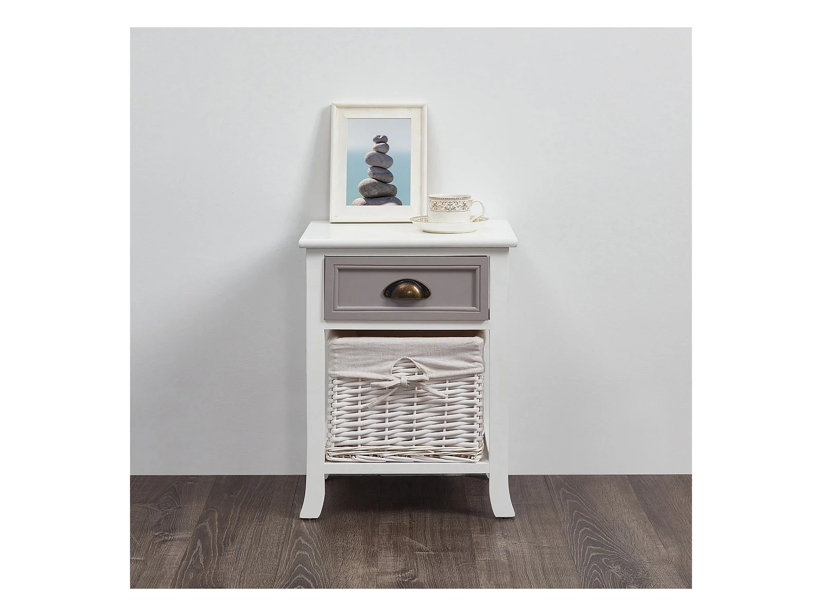 Table de chevet TOSCANA table de nuit 1 tiroir et 1 panier en bois de paulownia style shabby chic vintage rustique campagnard blanc