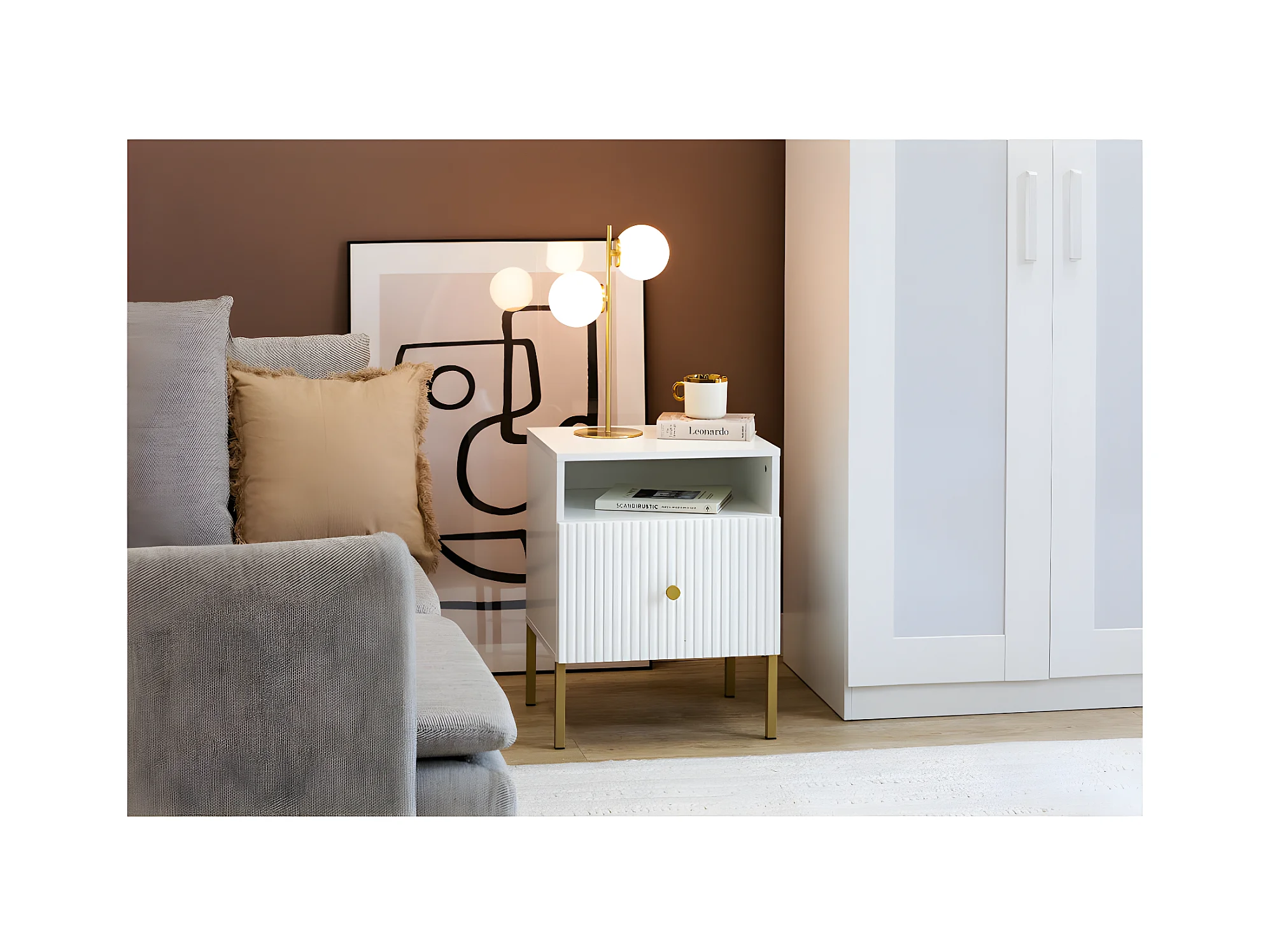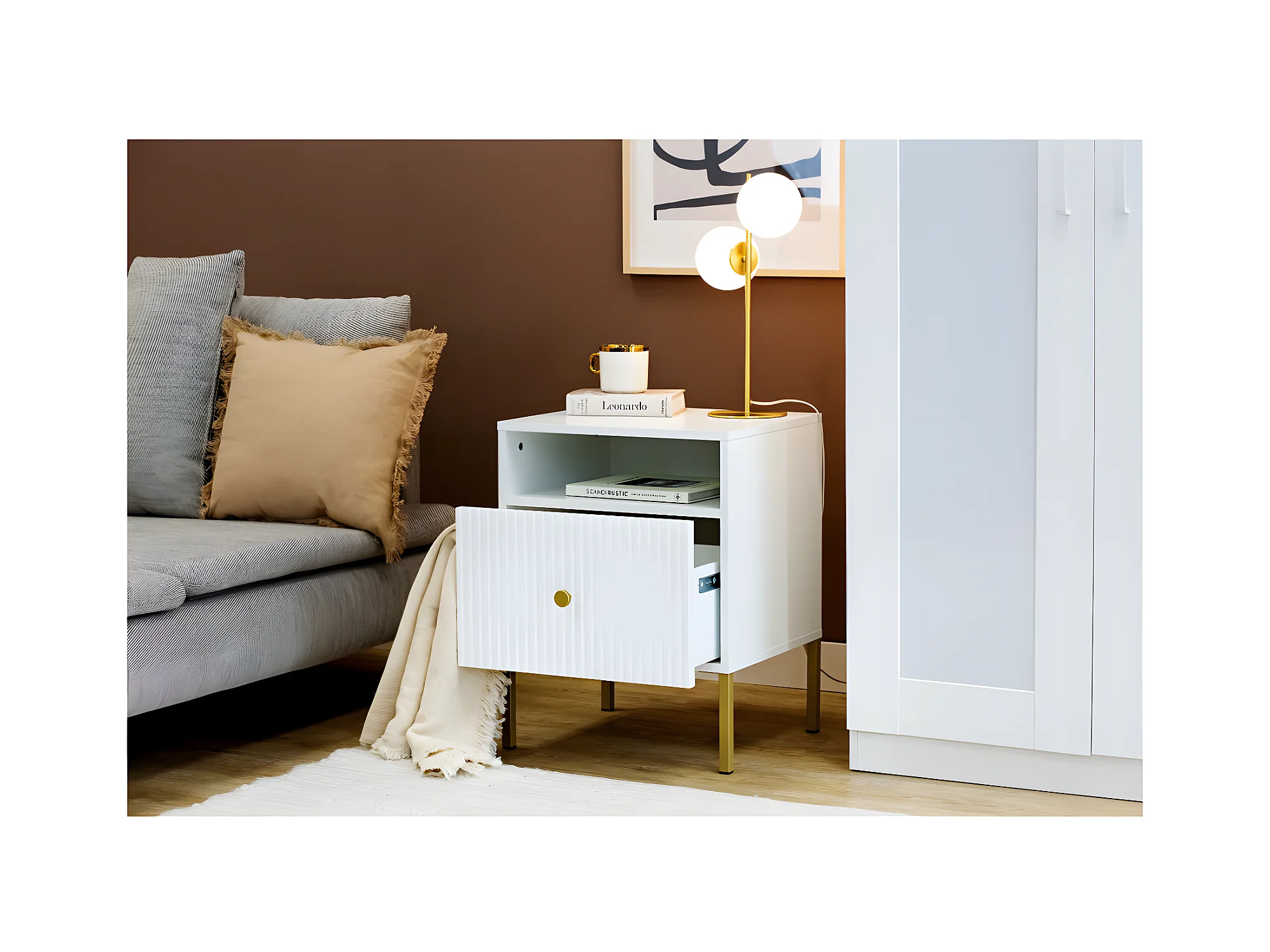 Table de chevet VIENA 1 Tiroir Blanc - Doré