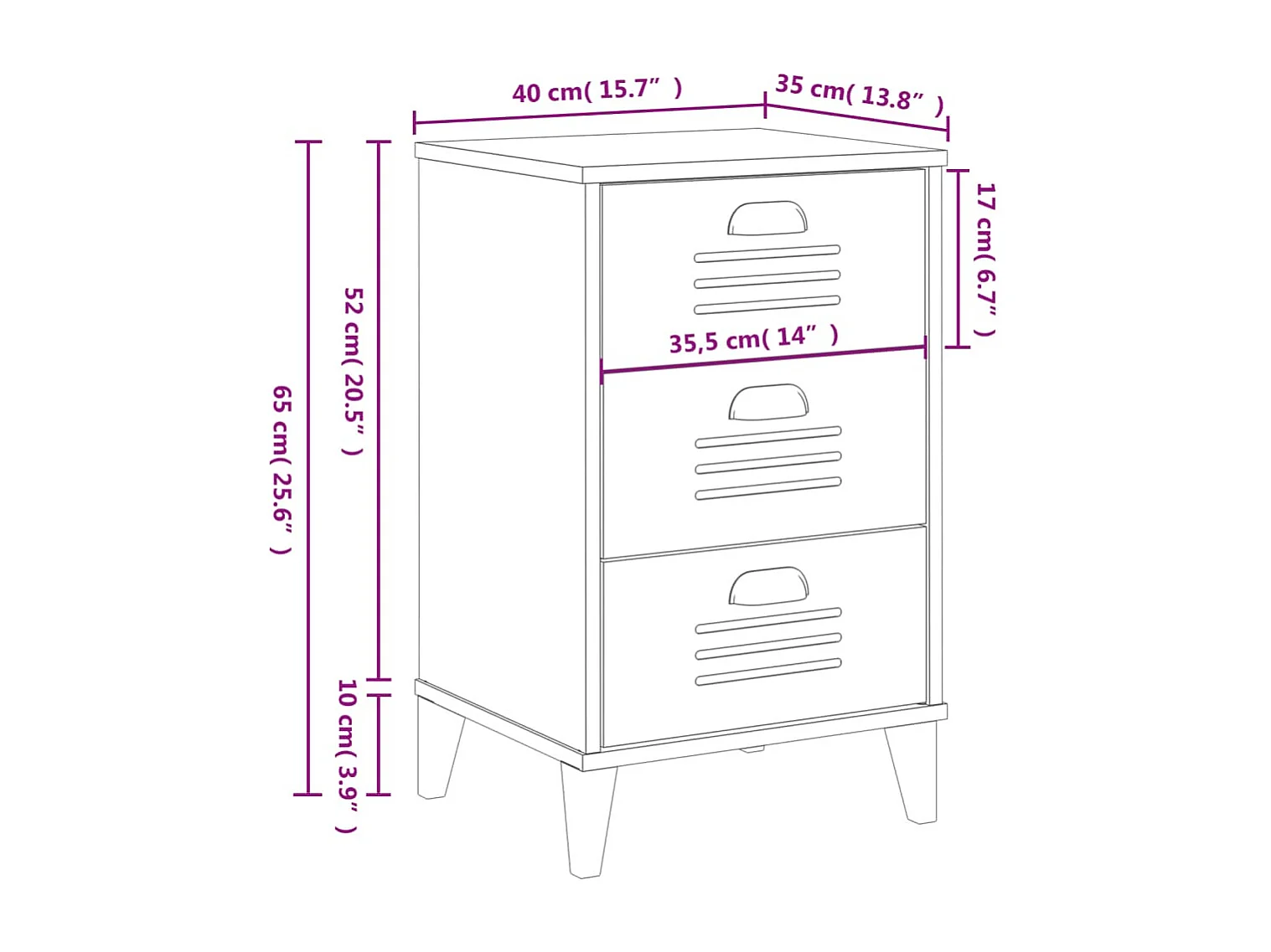 Table de chevet MOLDE Blanc 40x35x65 Bois de pin massif
