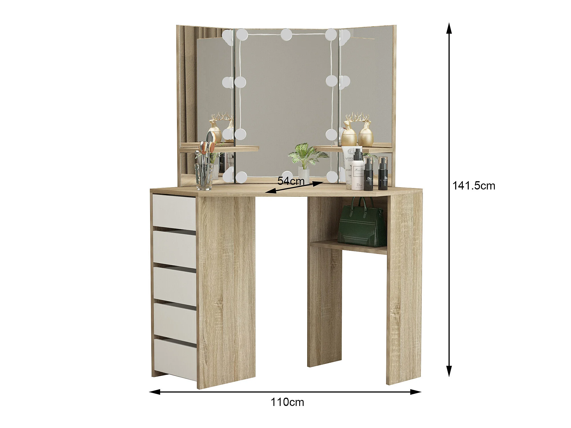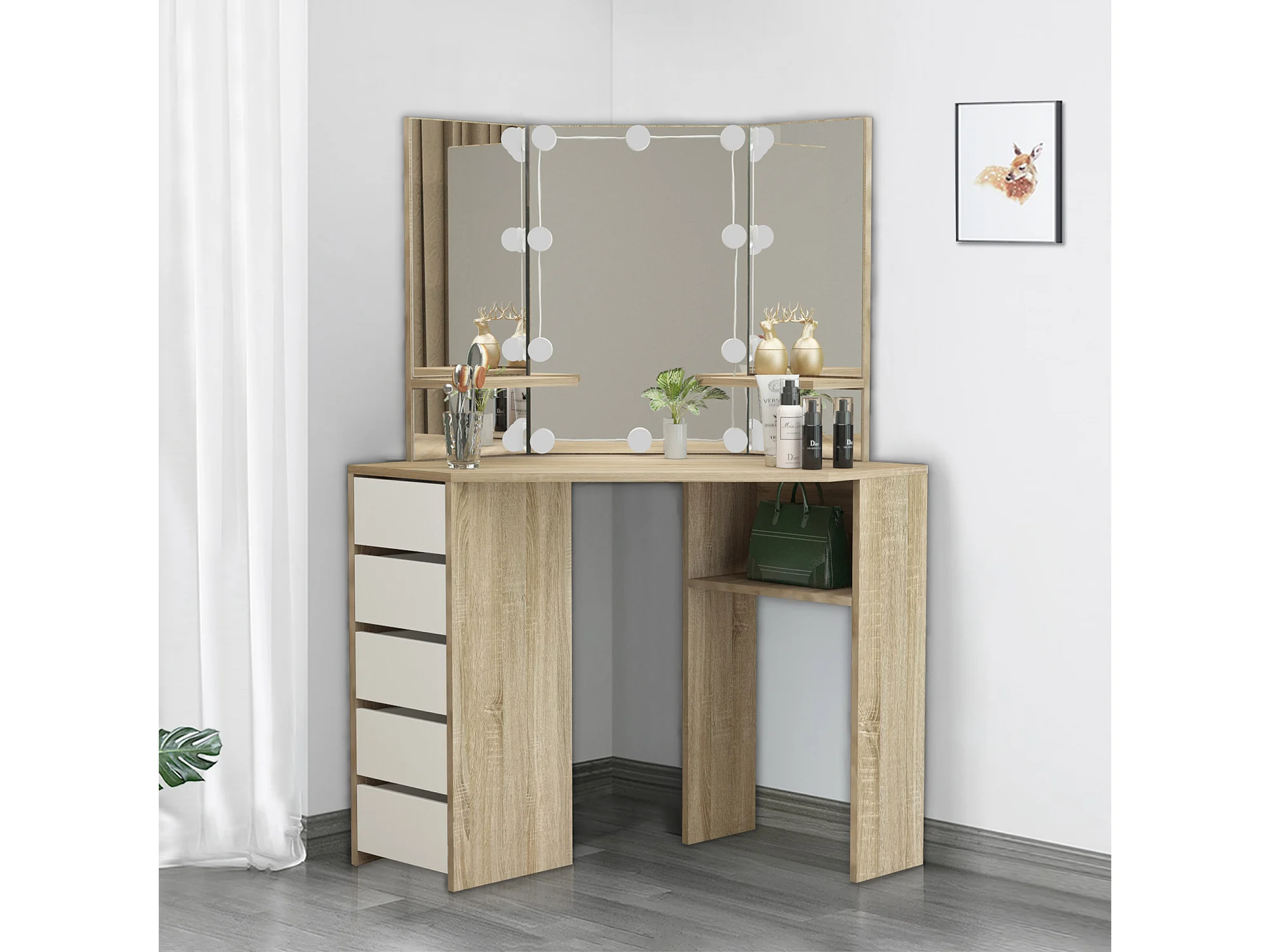 Table de coiffeuse maquillage sonoma avec miroir éclairage LED ML-DESIGN