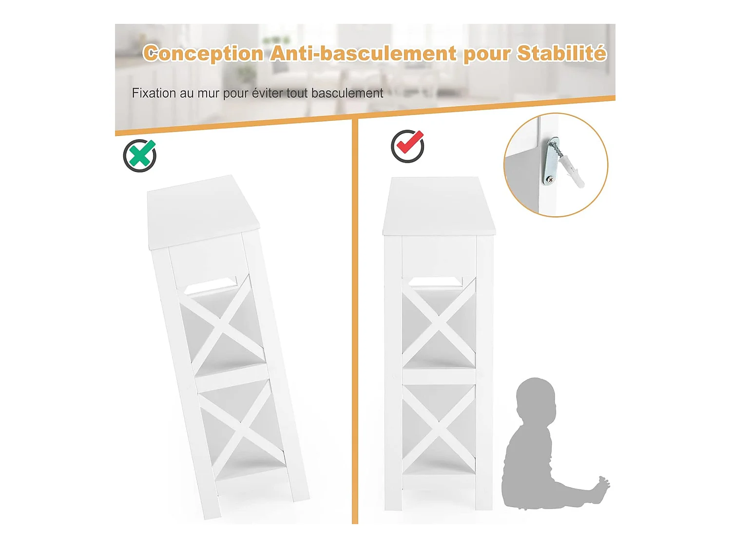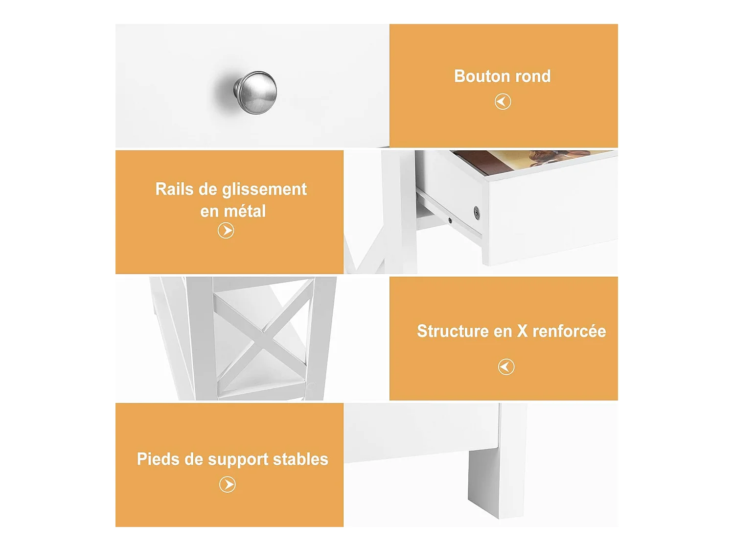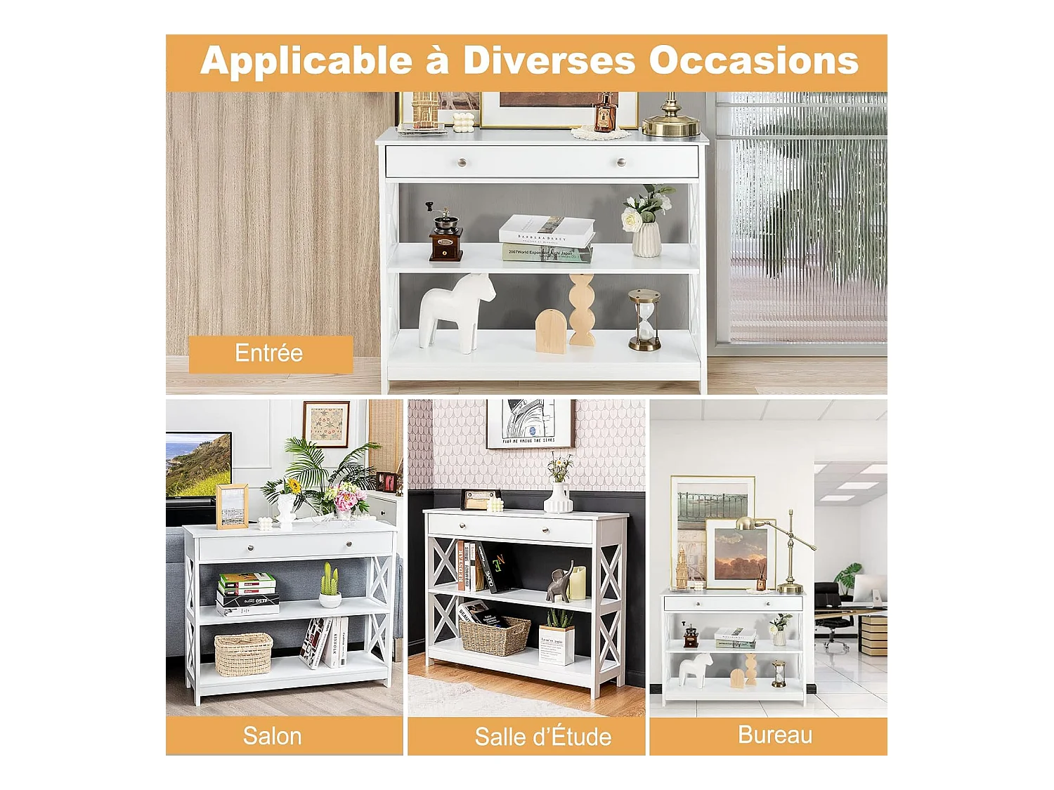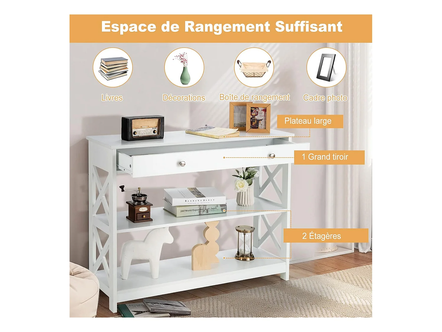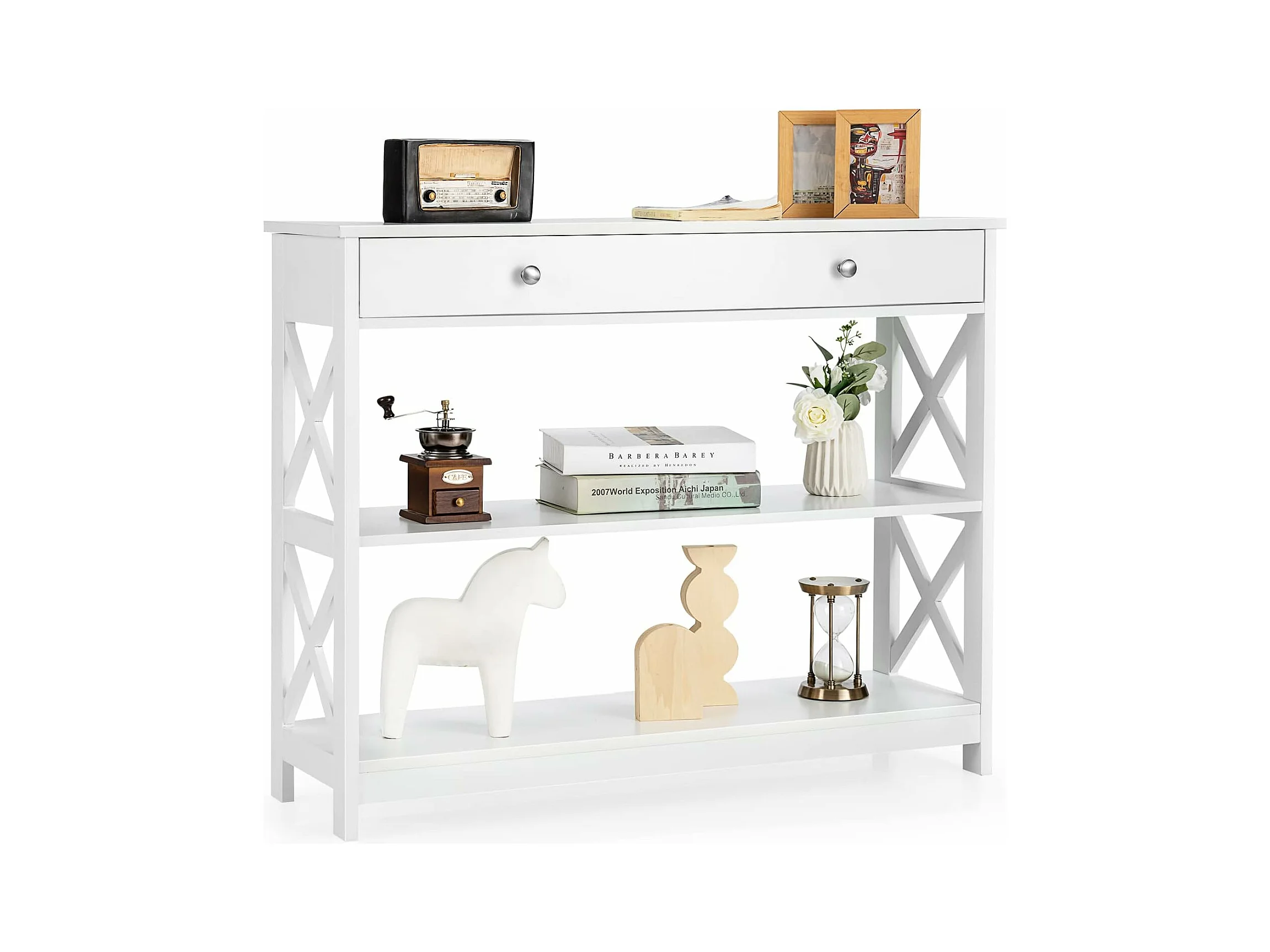 Table de Console à 3 Niveaux, Console Meuble avec Tiroir et 2 Étagères de Rangement de Motif en X, Console Entrée pour Couloir, Salon, Entrée, 100x30x80CM (Blanc)