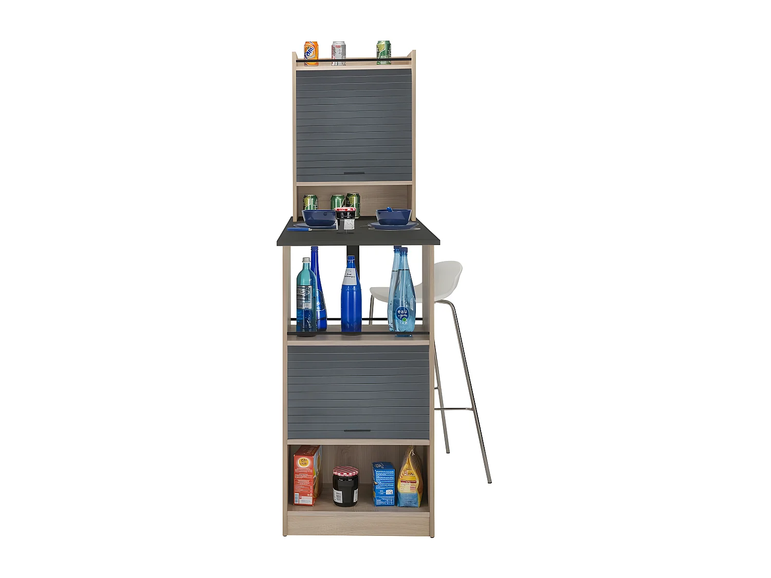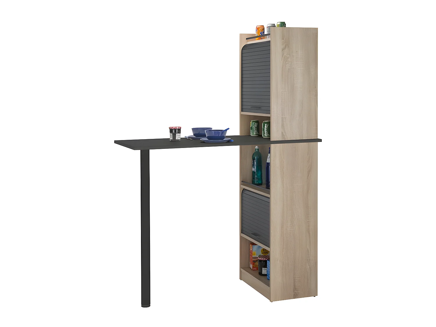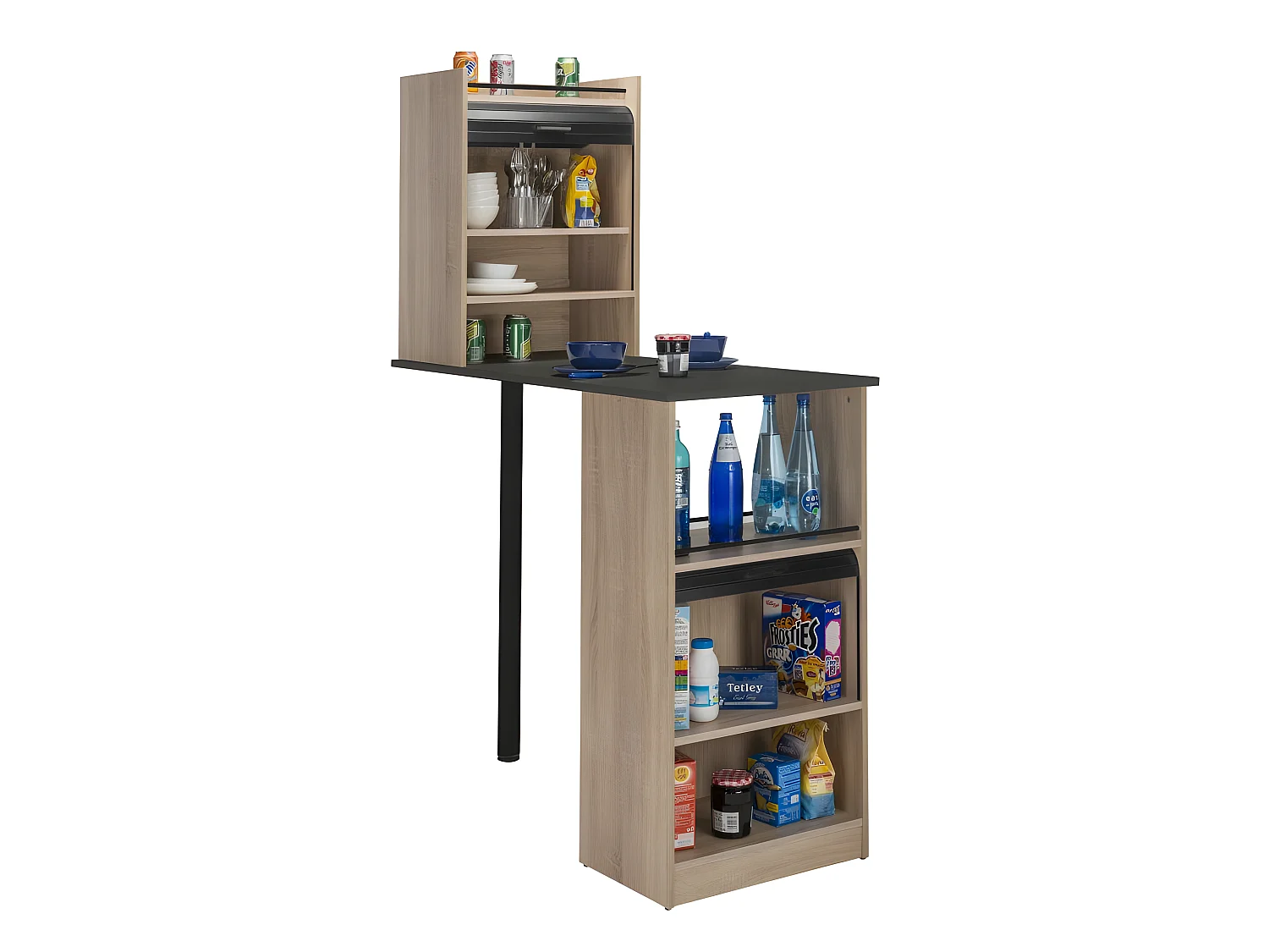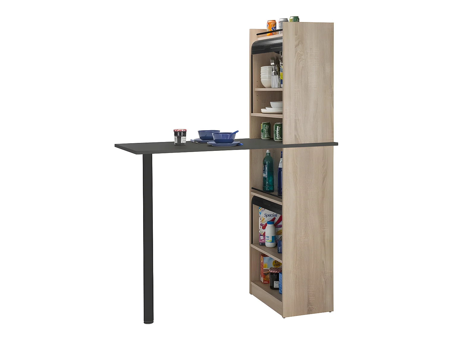 Table de cuisine et 2 Meubles de rangement chene - Coloris: Noir