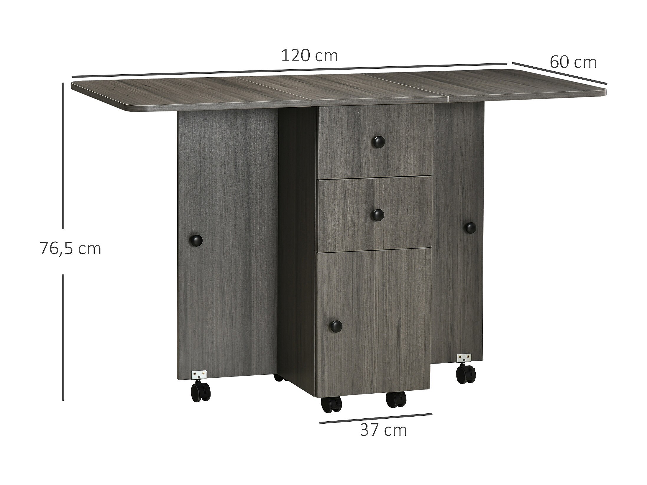 Table pliable de cuisine salle à manger - 2 tiroirs, placard, niche - panneaux aspect bois anthracite