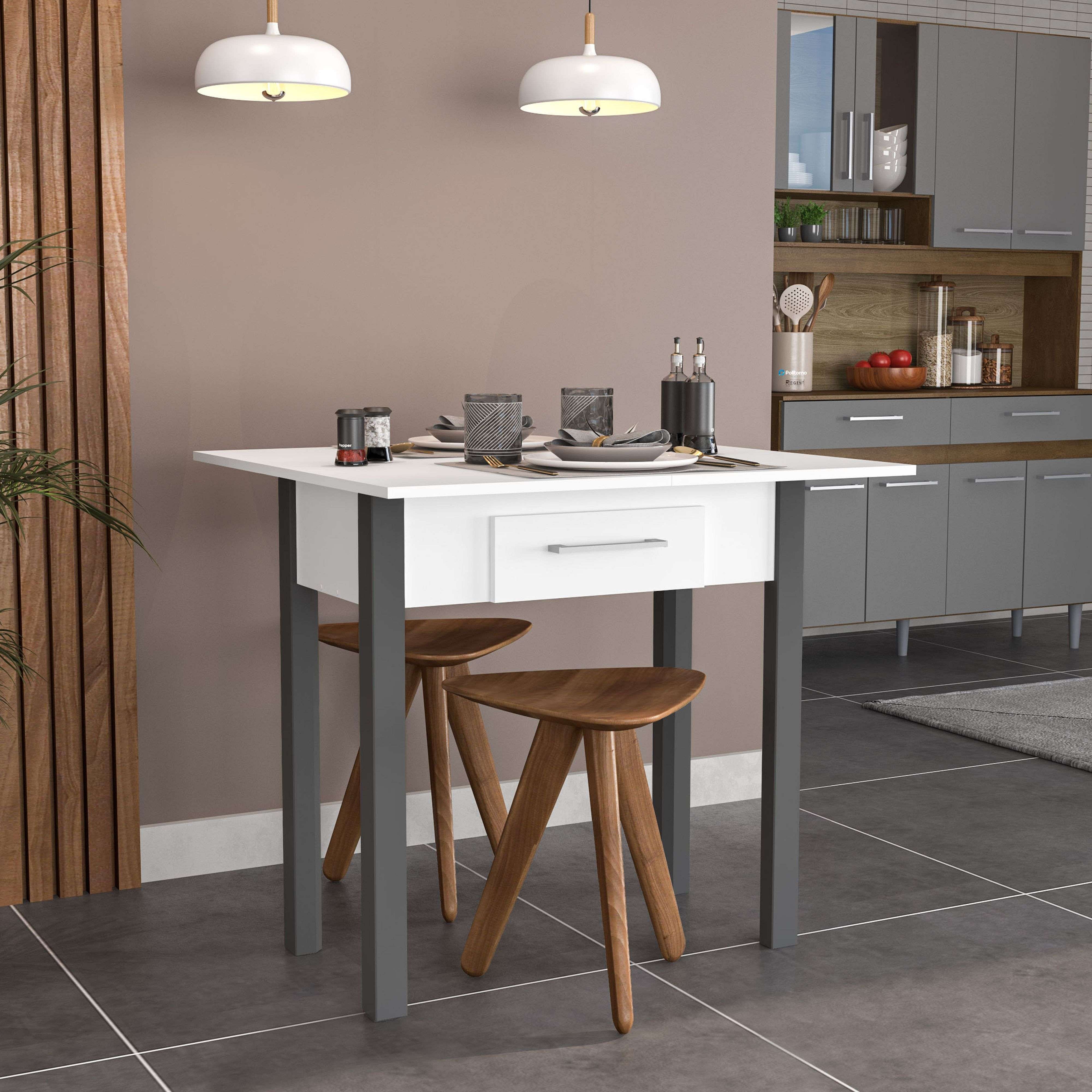 Table de cuisine Sendai avec tiroir pour 2 personnes en mélaminé blanc et gris 80x75x40 cm