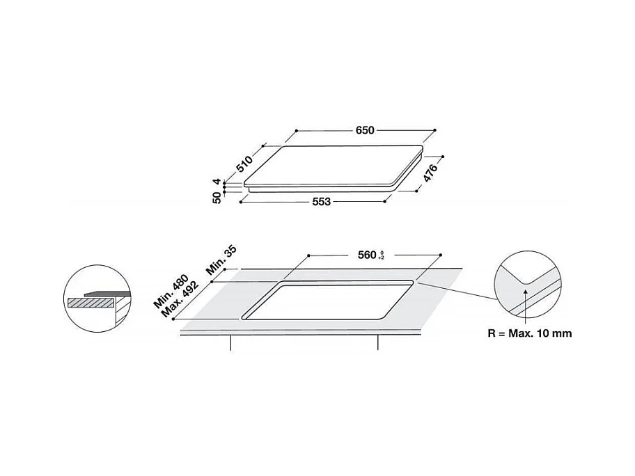 Plaque induction WHIRLPOOL 7200W 65cm, WLB 4265 BFIXL