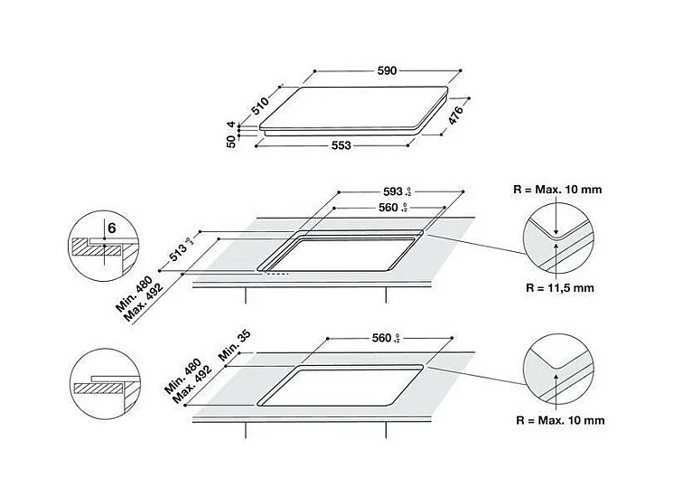 Plaque induction INDESIT 7200W 59cm, IS 33 Q 60 NE