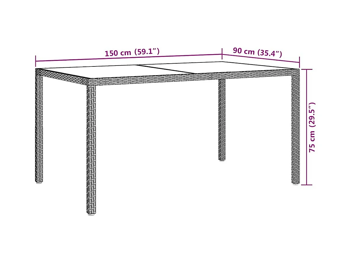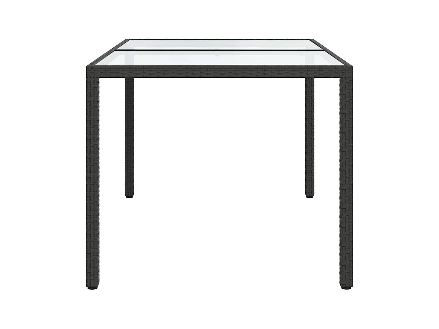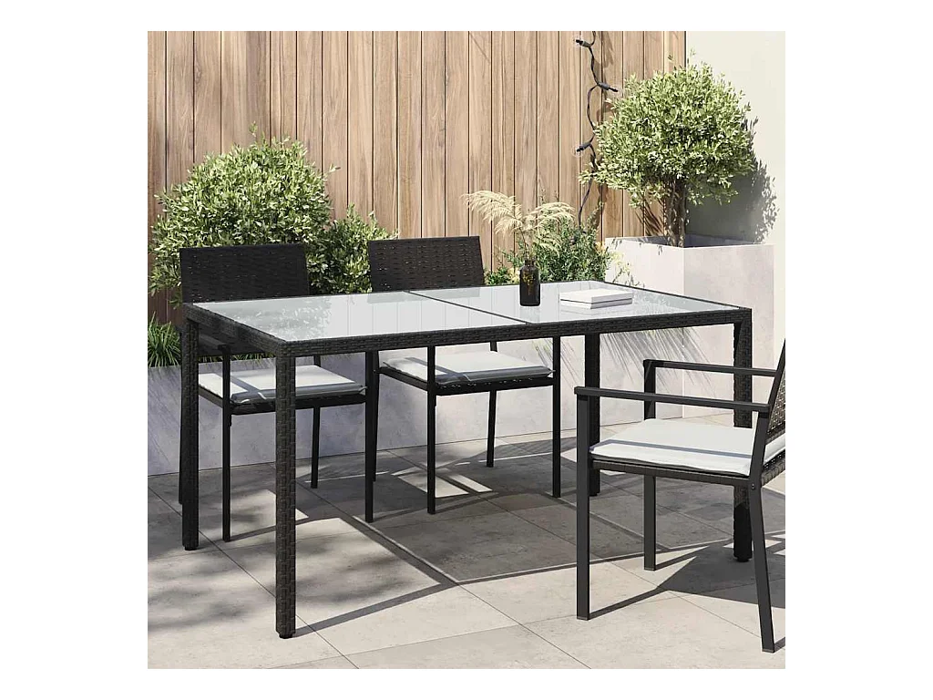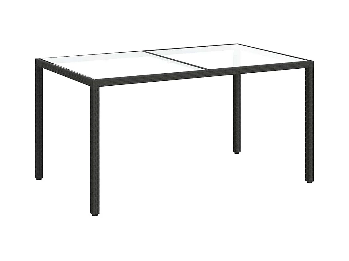 Table de jardin 150x90x75cm Verre trempé et résine tressée Noir
