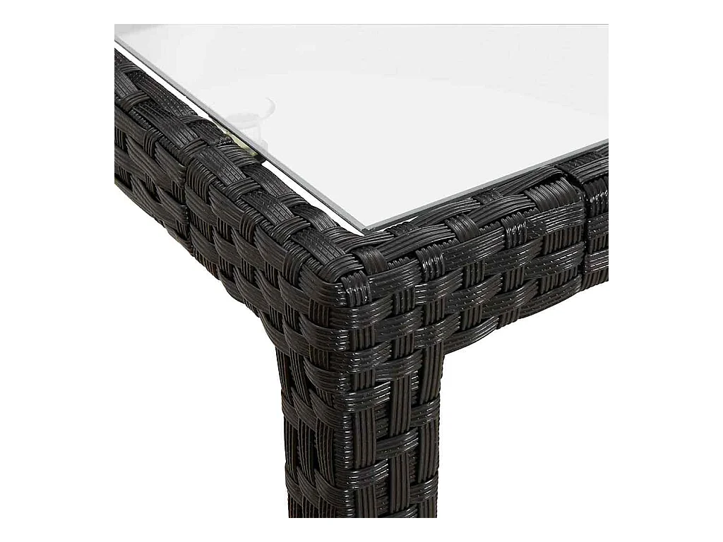 Table de jardin dessus en verre Noir 150x90x75cm Résine tressée