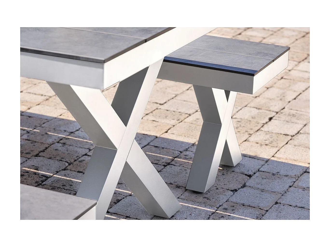 Table de Jardin & 2 Bancs "Annecy" 175cm Blanc