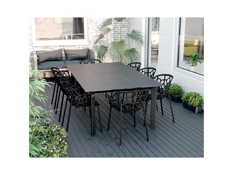 Table de jardin 8-10 personnes 220 X 120 X 75 cm - Noir effet marbré
