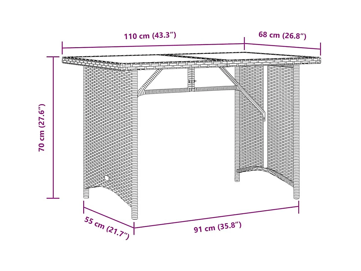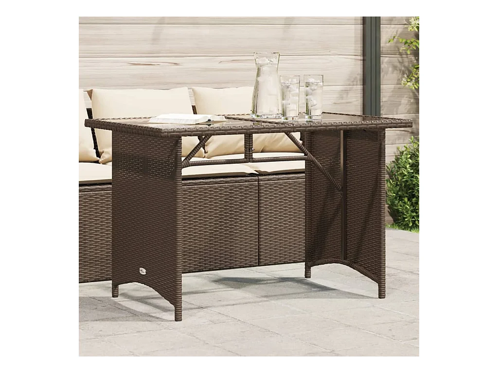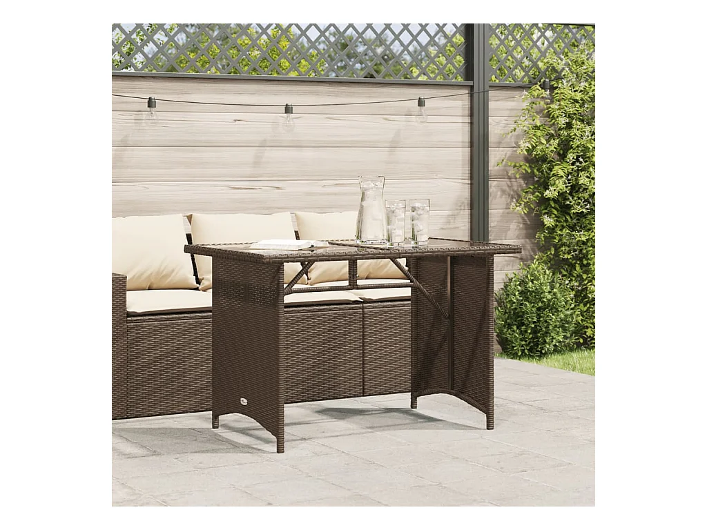 Table de jardin avec dessus en verre marron 110x68x70 cm rotin