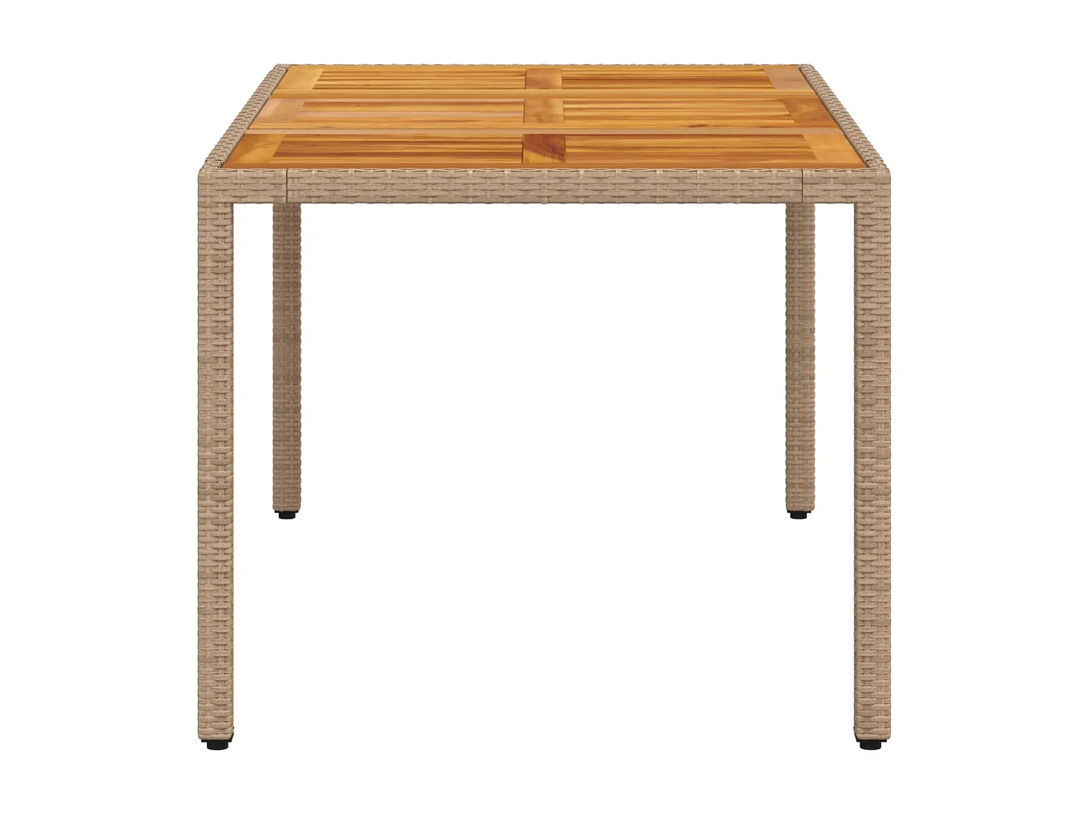 Table de jardin beige 150x90x75 résine tressée bois d'acacia