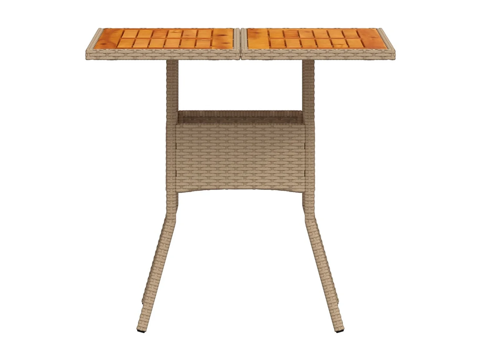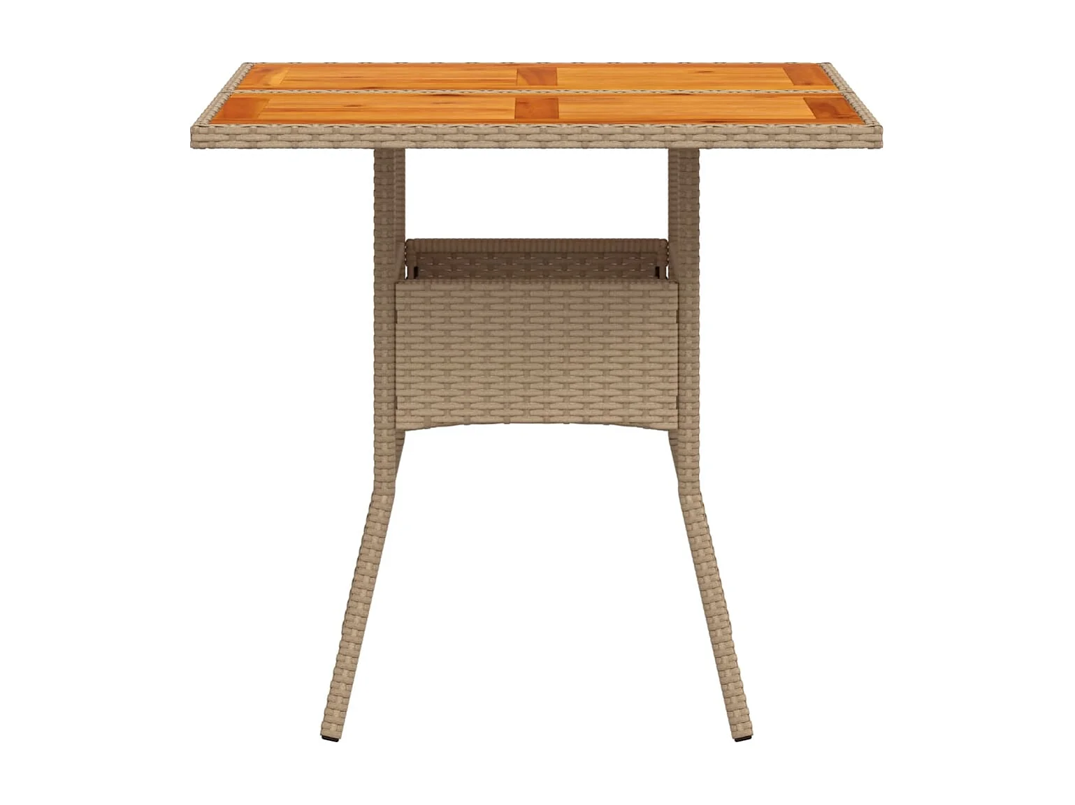 Table de jardin beige 80x80x75 résine tressée et bois acacia