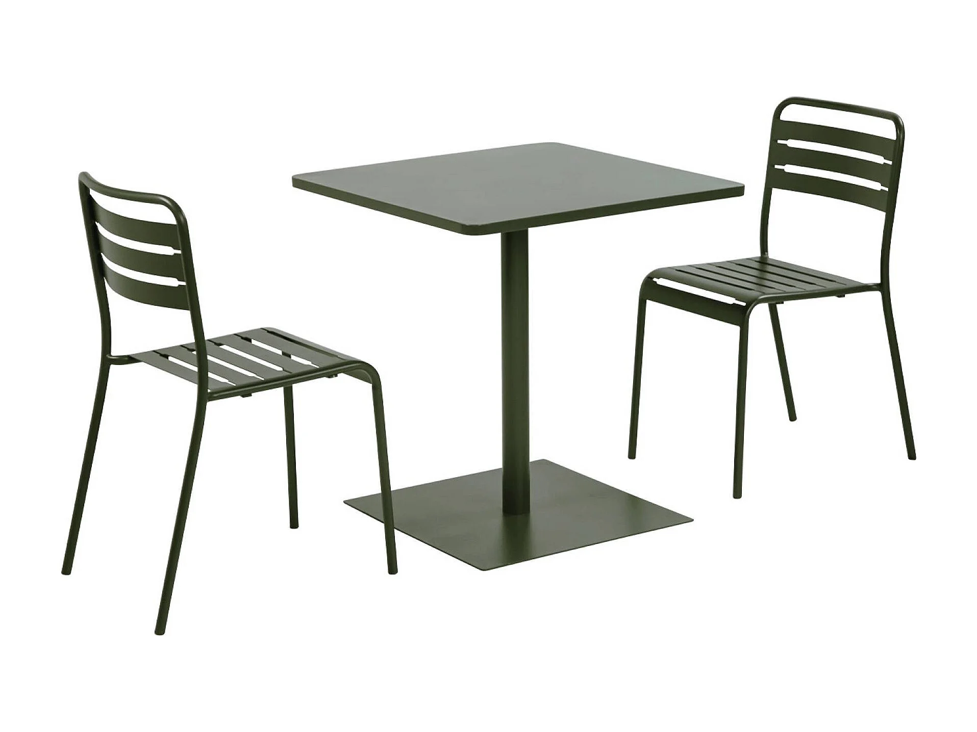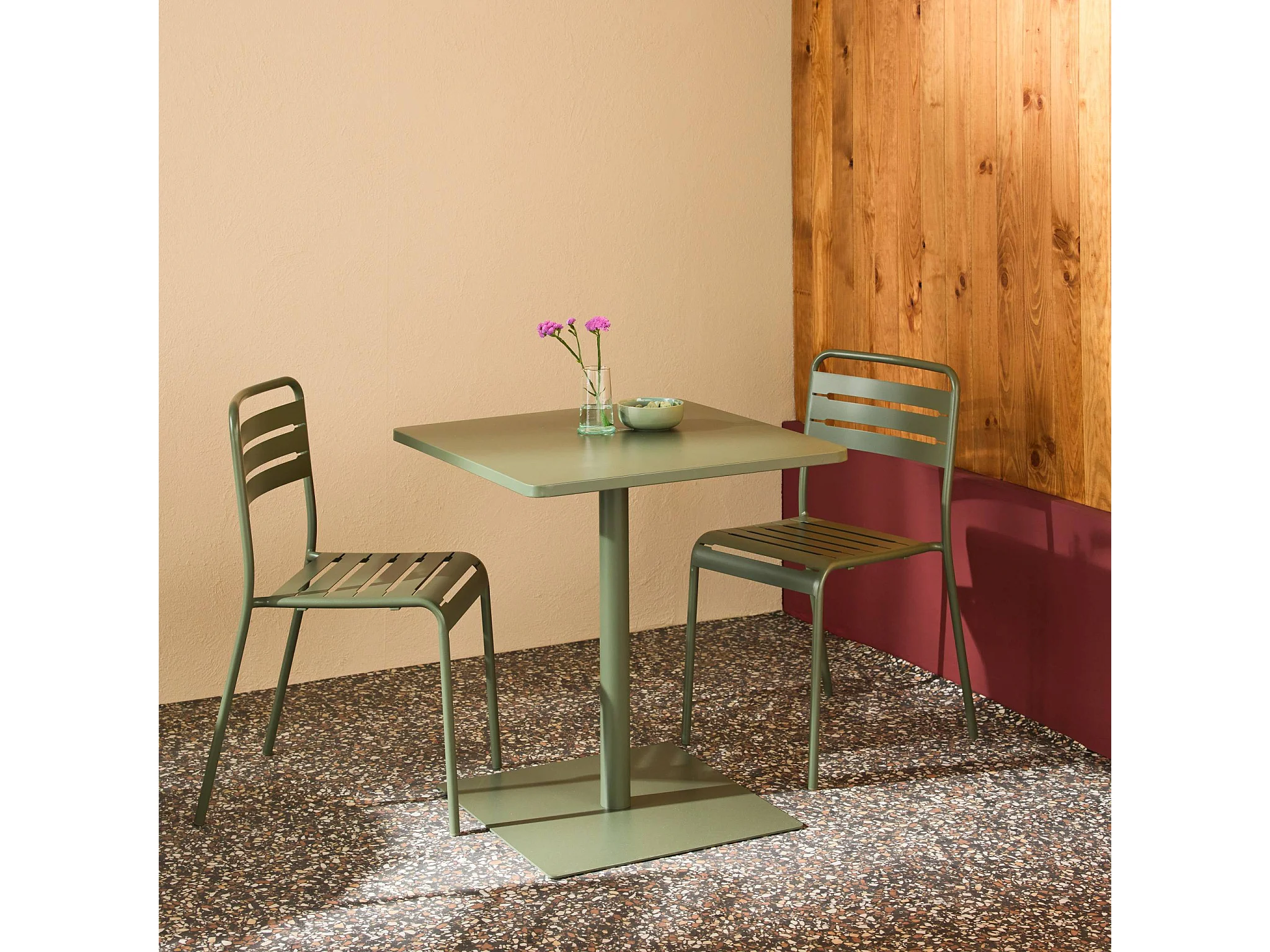 Table de jardin bistrot carré acier + 2 assises 70 cm kaki - Orea + Amélia