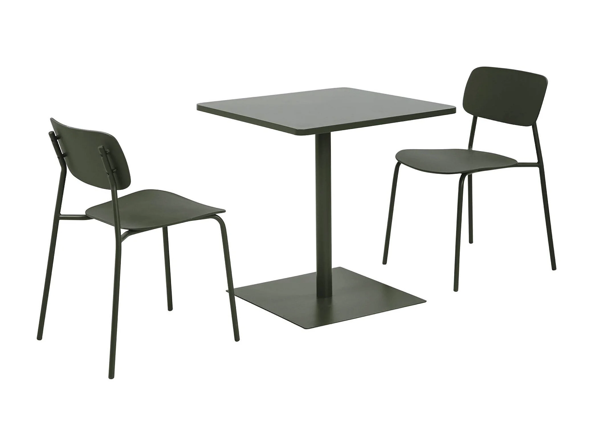 Table de jardin bistrot carré acier + 2 assises 70 cm kaki - Orea + Liva