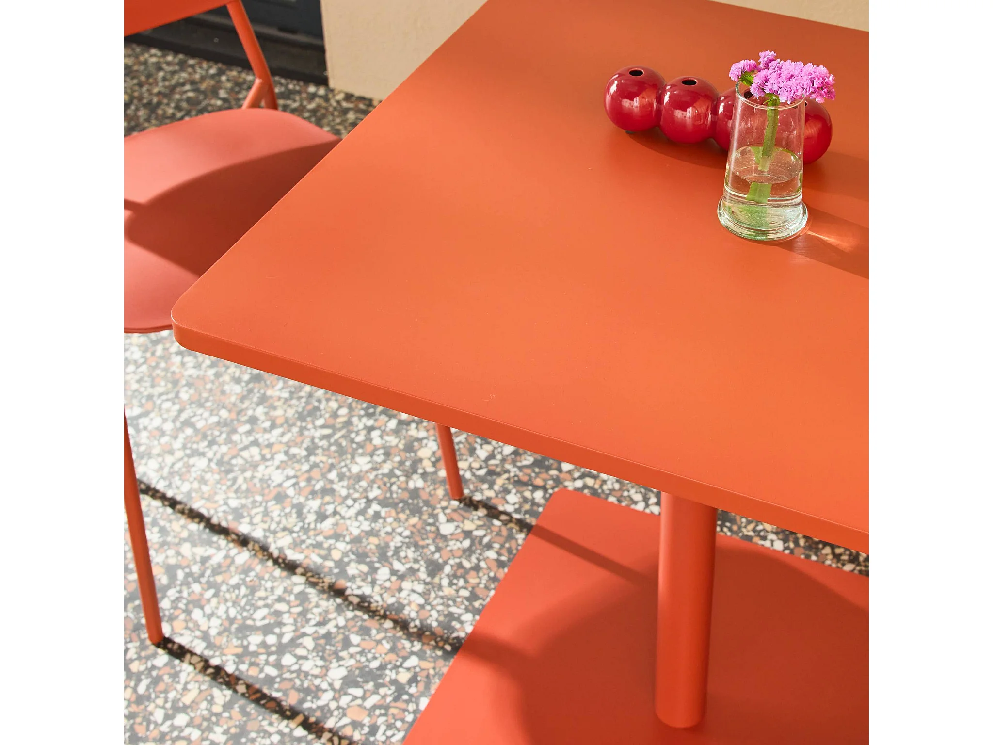 Table de jardin bistrot carré acier + 2 assises 70 cm terracotta - Orea + Liva