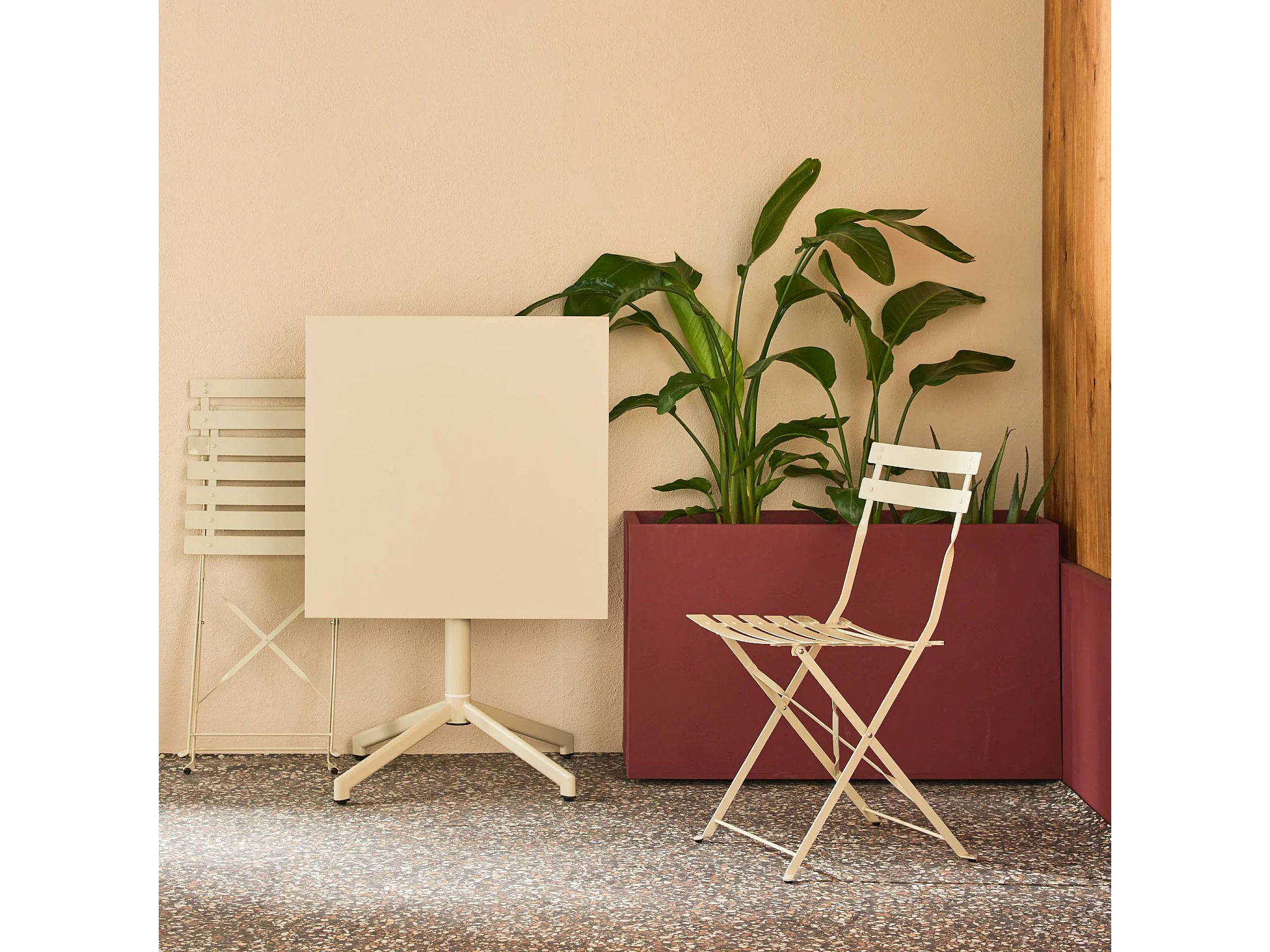 Table de jardin bistrot carrée pliante acier 70cm + 2 places beige - Chiara/Emilia