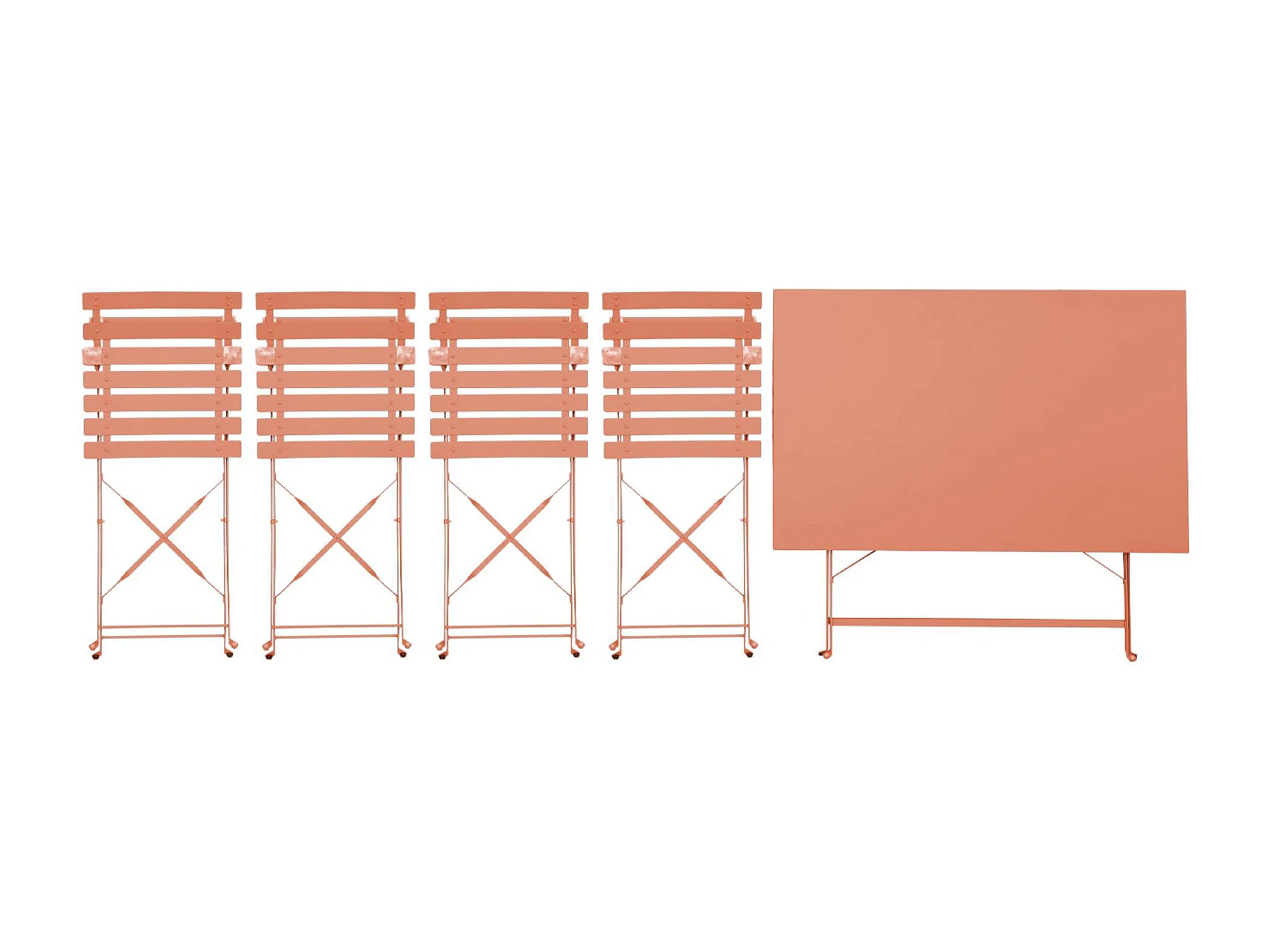 Table de jardin bistrot pliante métal + 4 assises 110 x 70cm. avec quatre chaises pliantes. acier thermolaqué