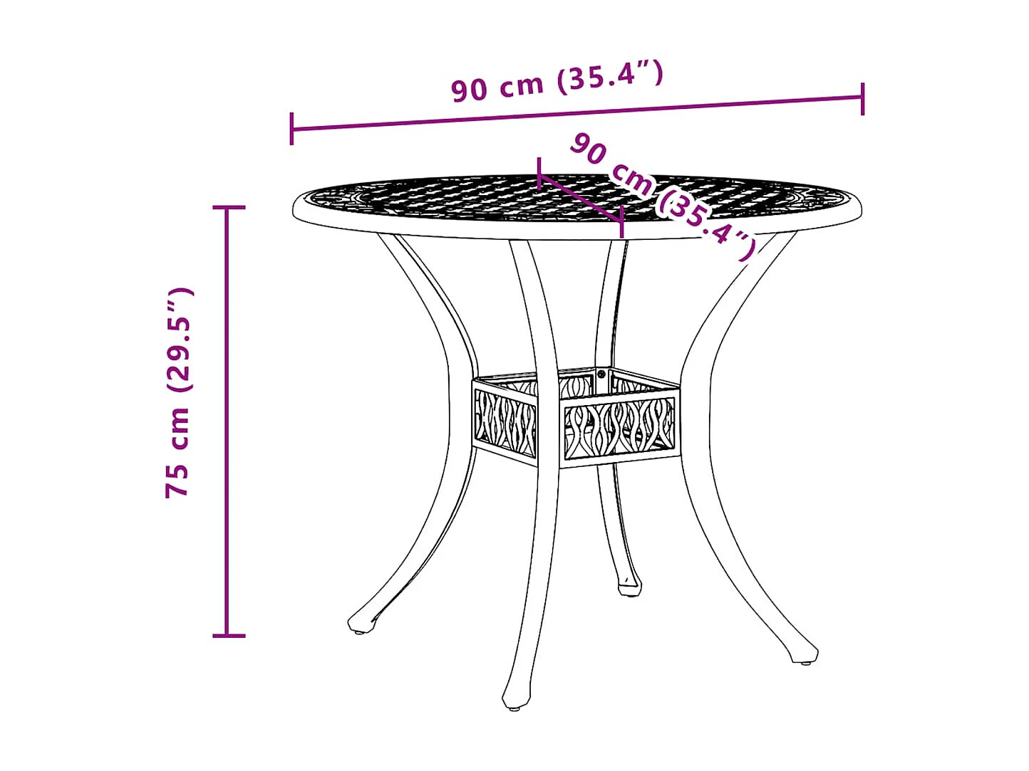 Table de jardin blanc Ø90x75 cm aluminium coulé