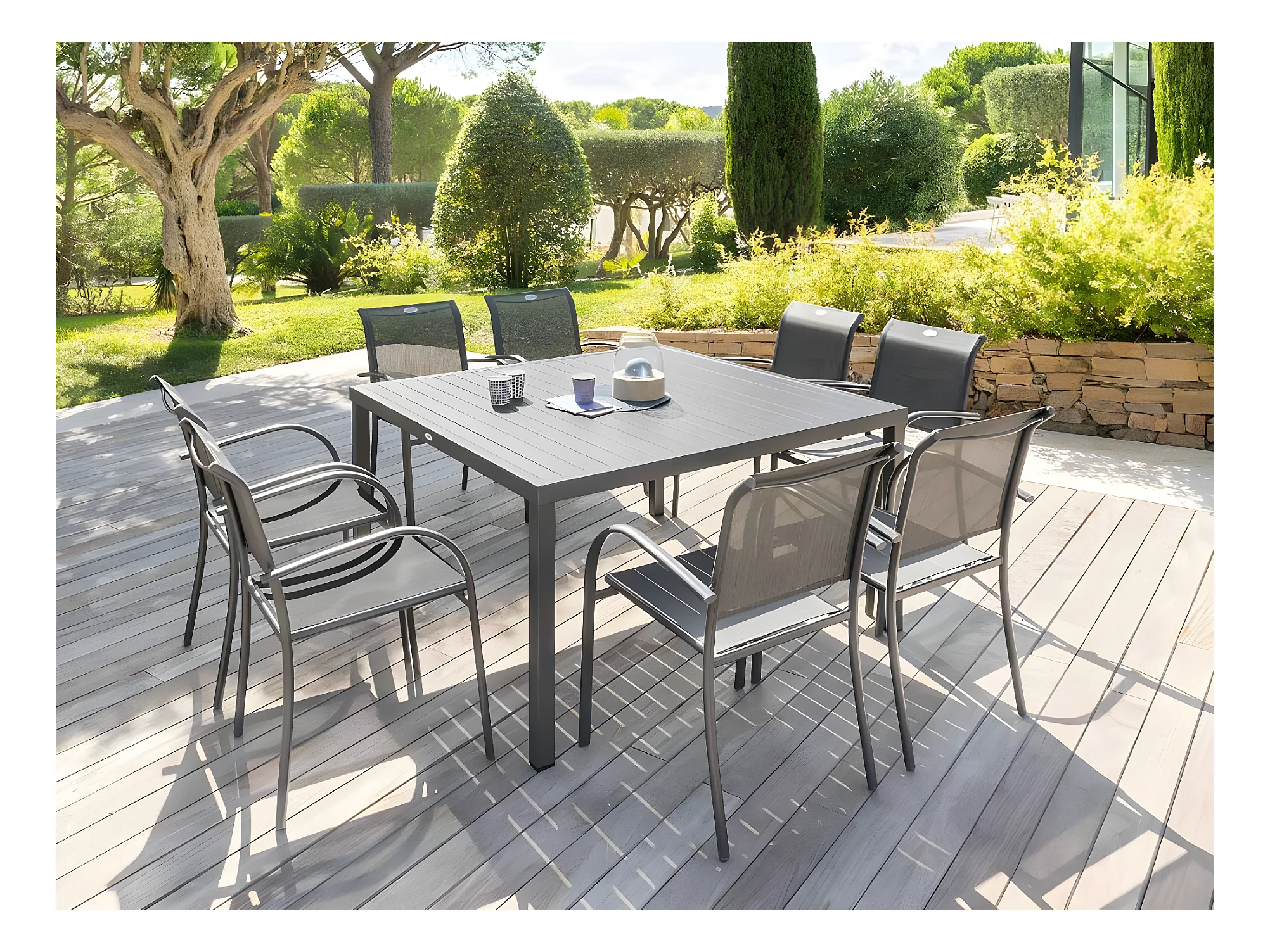 Table de jardin carrée Piazza 8 places Graphite - Hespéride