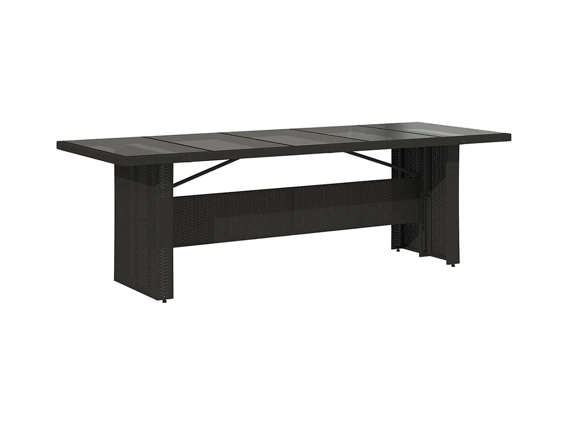 Table de jardin dessus en verre noir 240x90x75cm résine tressée