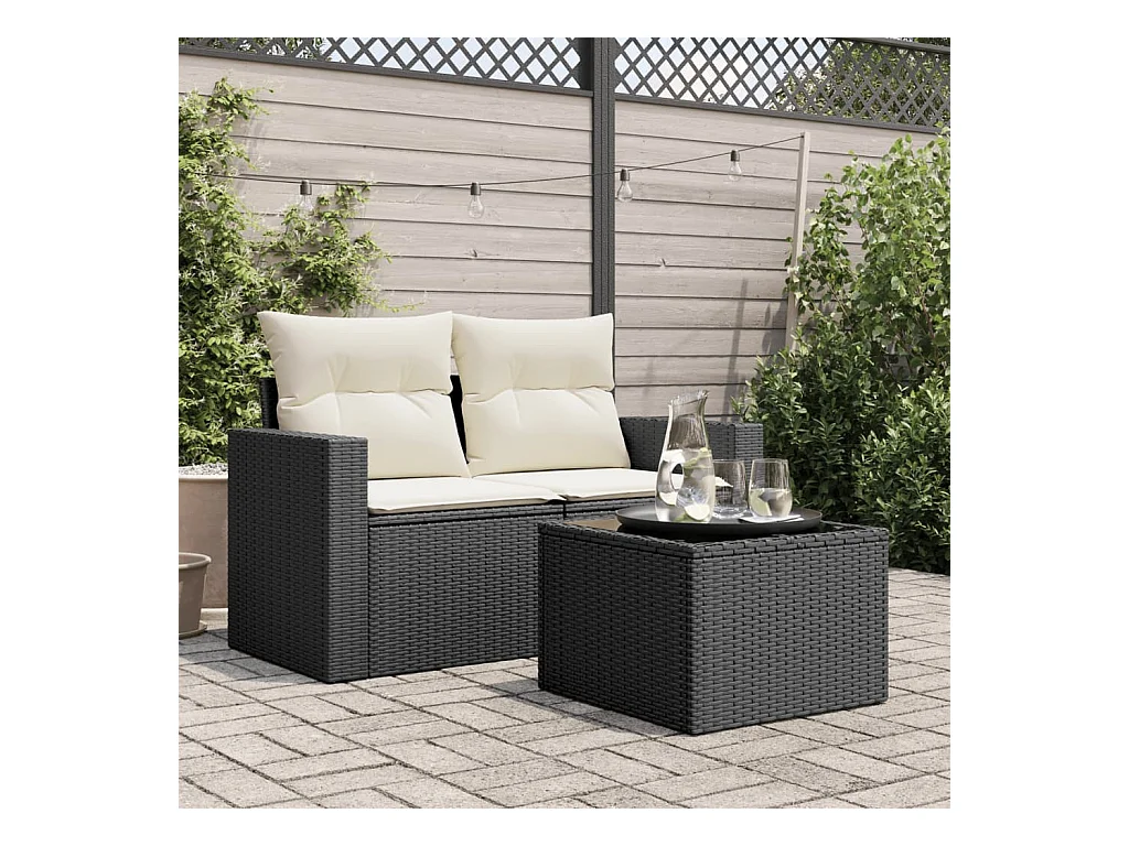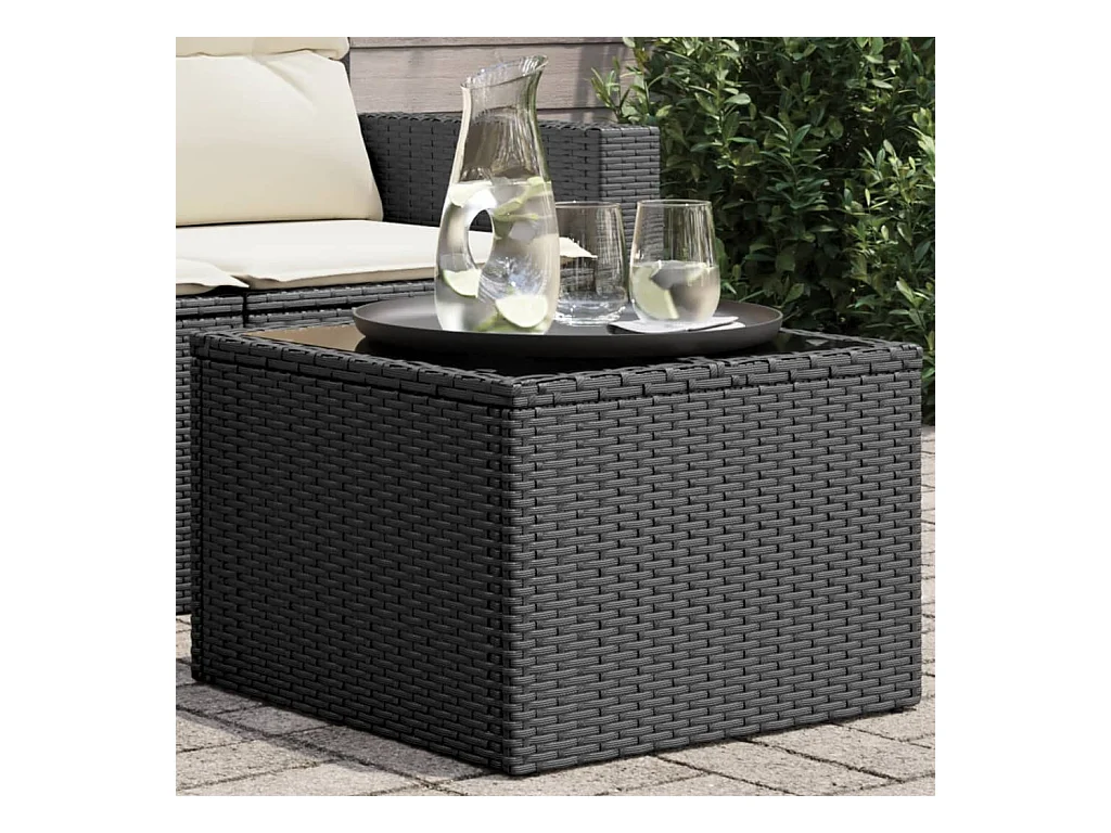 Table de jardin dessus en verre noir 55x55x37 cm résine tressée