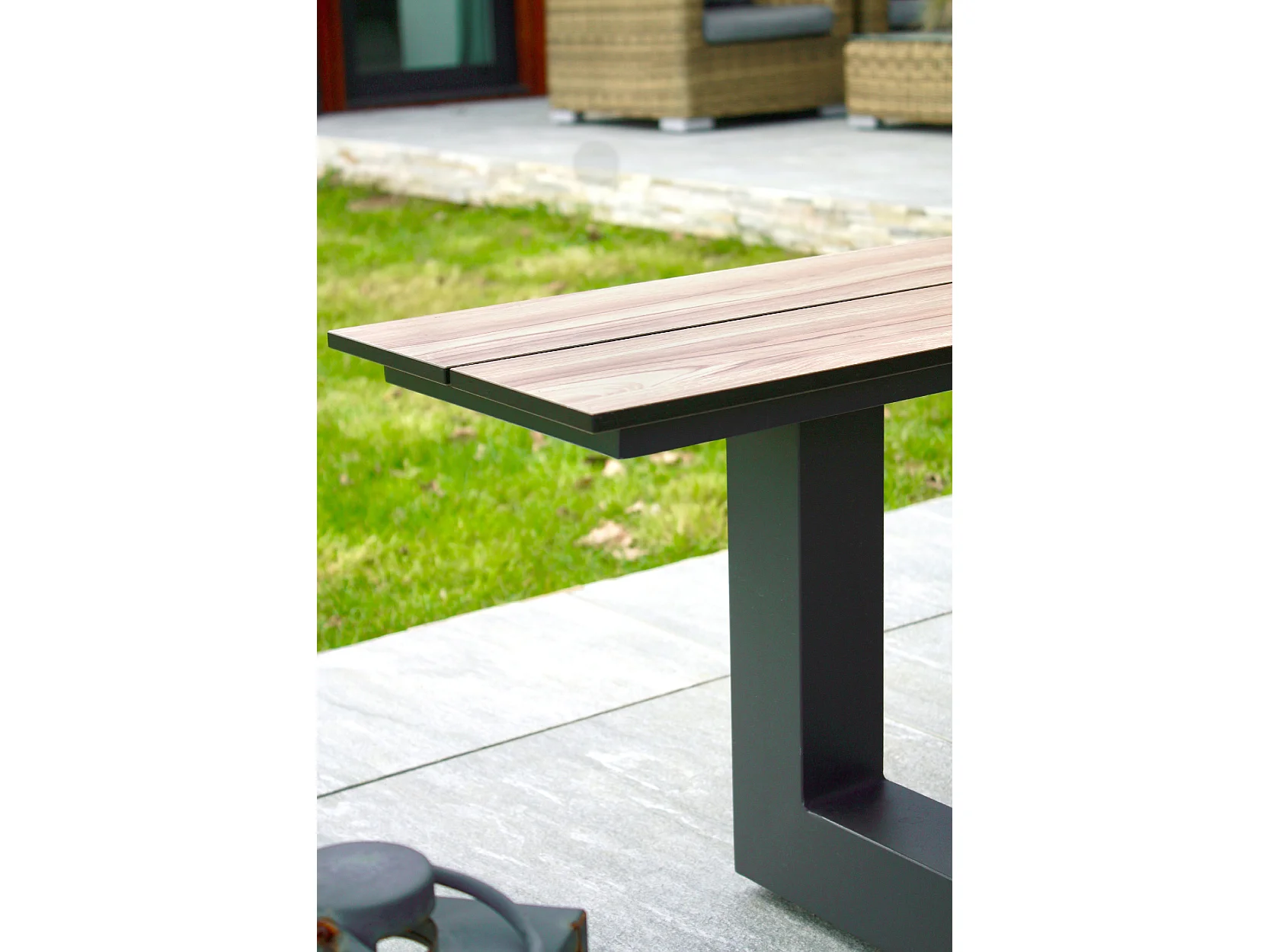 Table de jardin en aluminium et plateau HPL effet bois