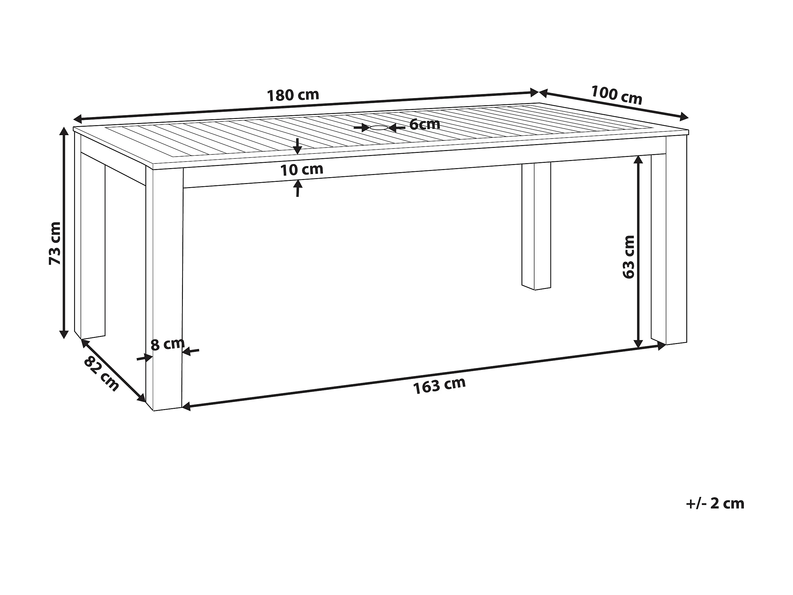 Table de salle à manger de jardin TUSCANIA 180 cm 100 cm Bois d'eucalyptus Marron foncé