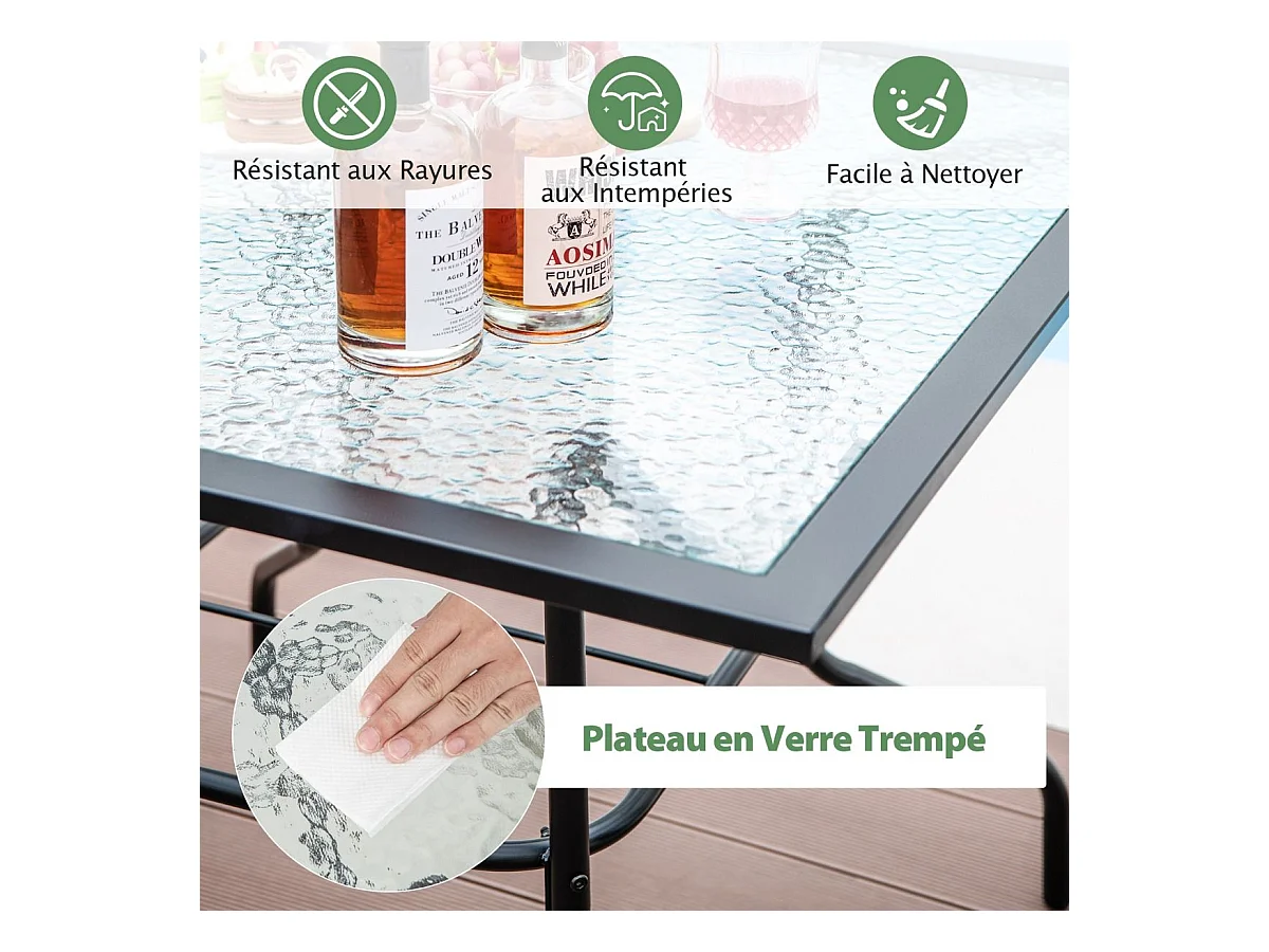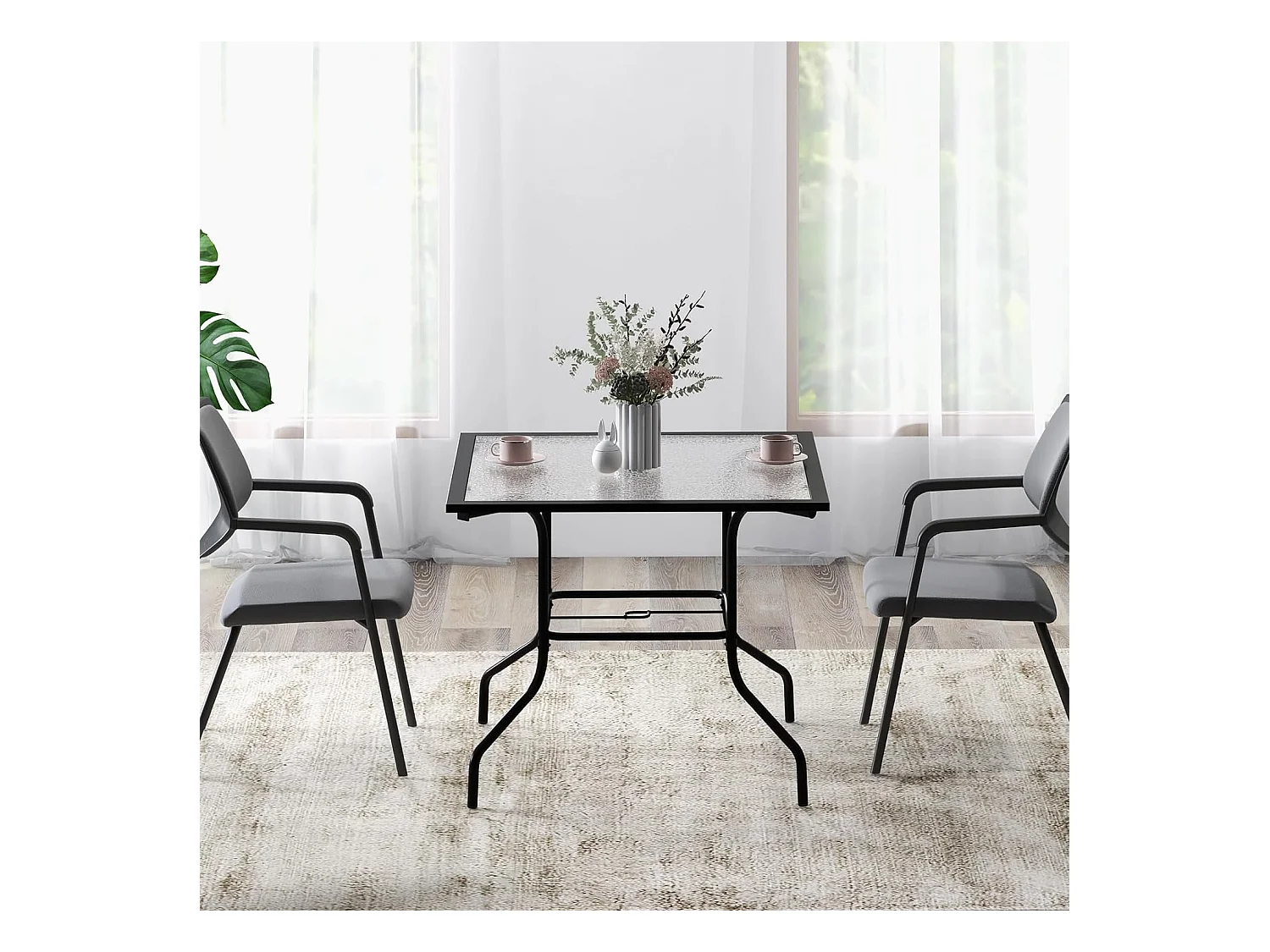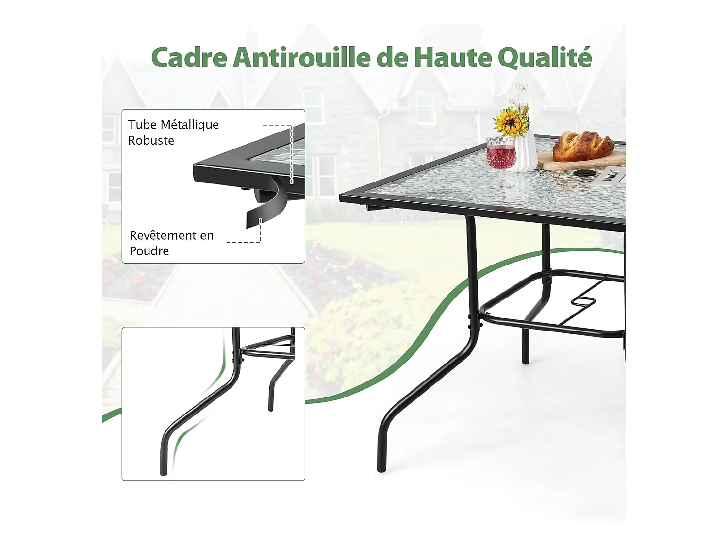 Table de Jardin en Verre Trempé 89 x 89 CM, Table d'Appoint avec Trou pour Parasol 38 MM, Cadre en Métal Robuste, Table Basse Carrée Extérieure pour Patio, Piscine