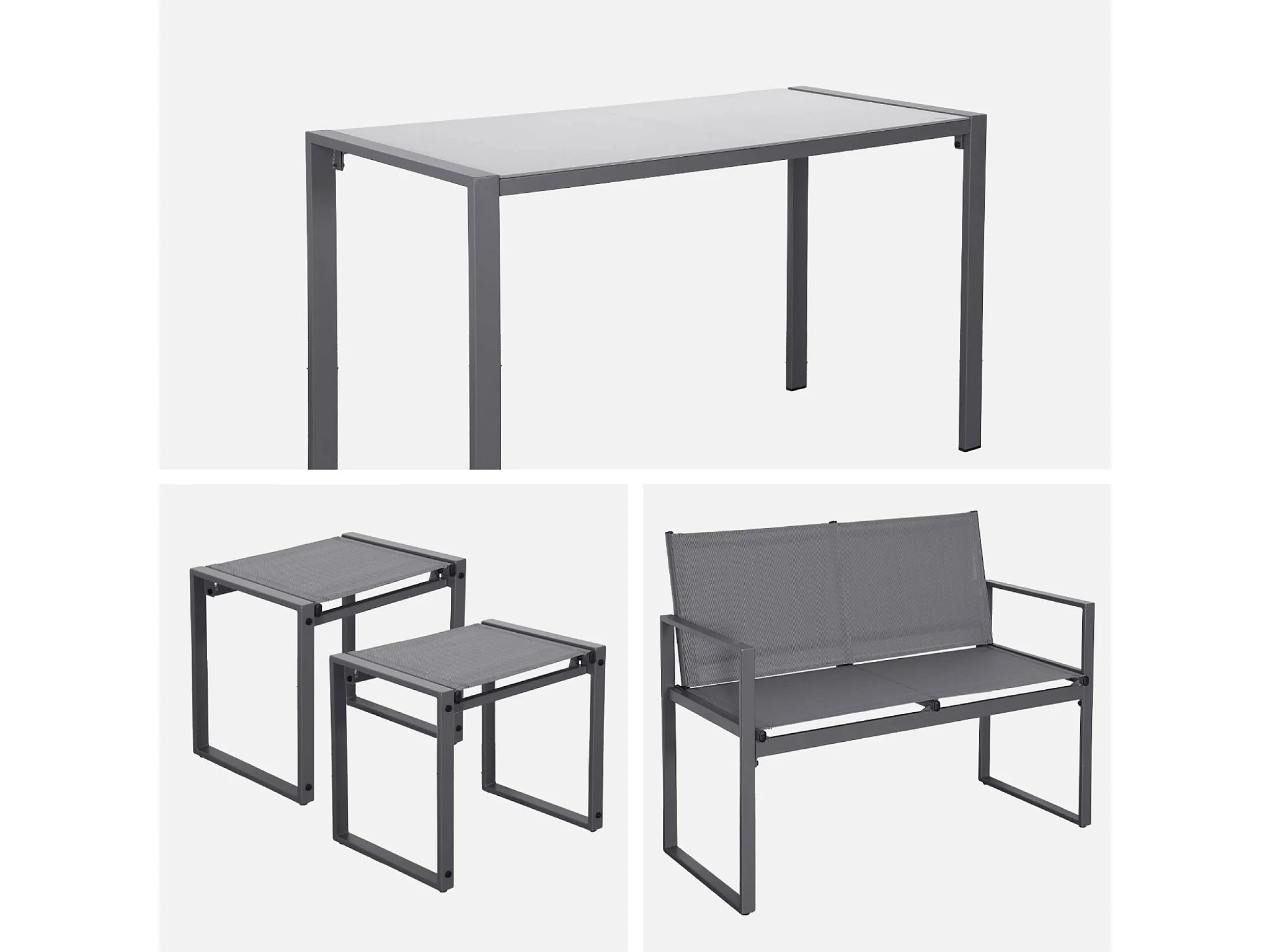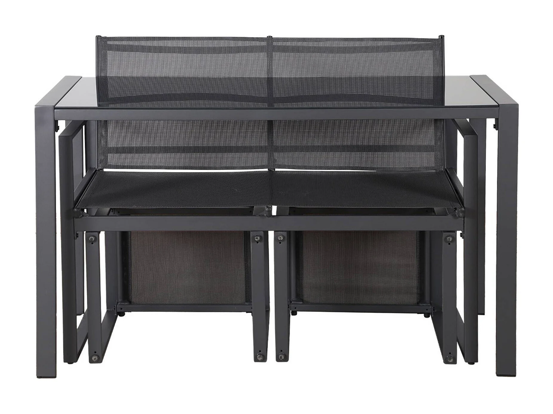 Table de jardin encastrable acier et textilène + 4 assises anthracite 125cm - Tavena
