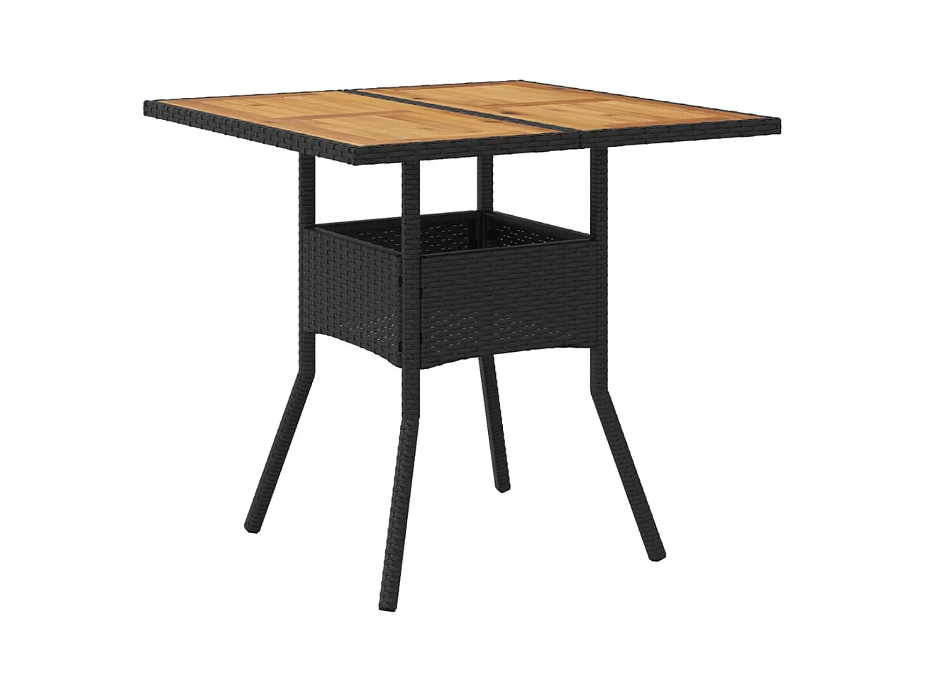 Table de jardin noir 80x80x71 résine tressée et bois acacia