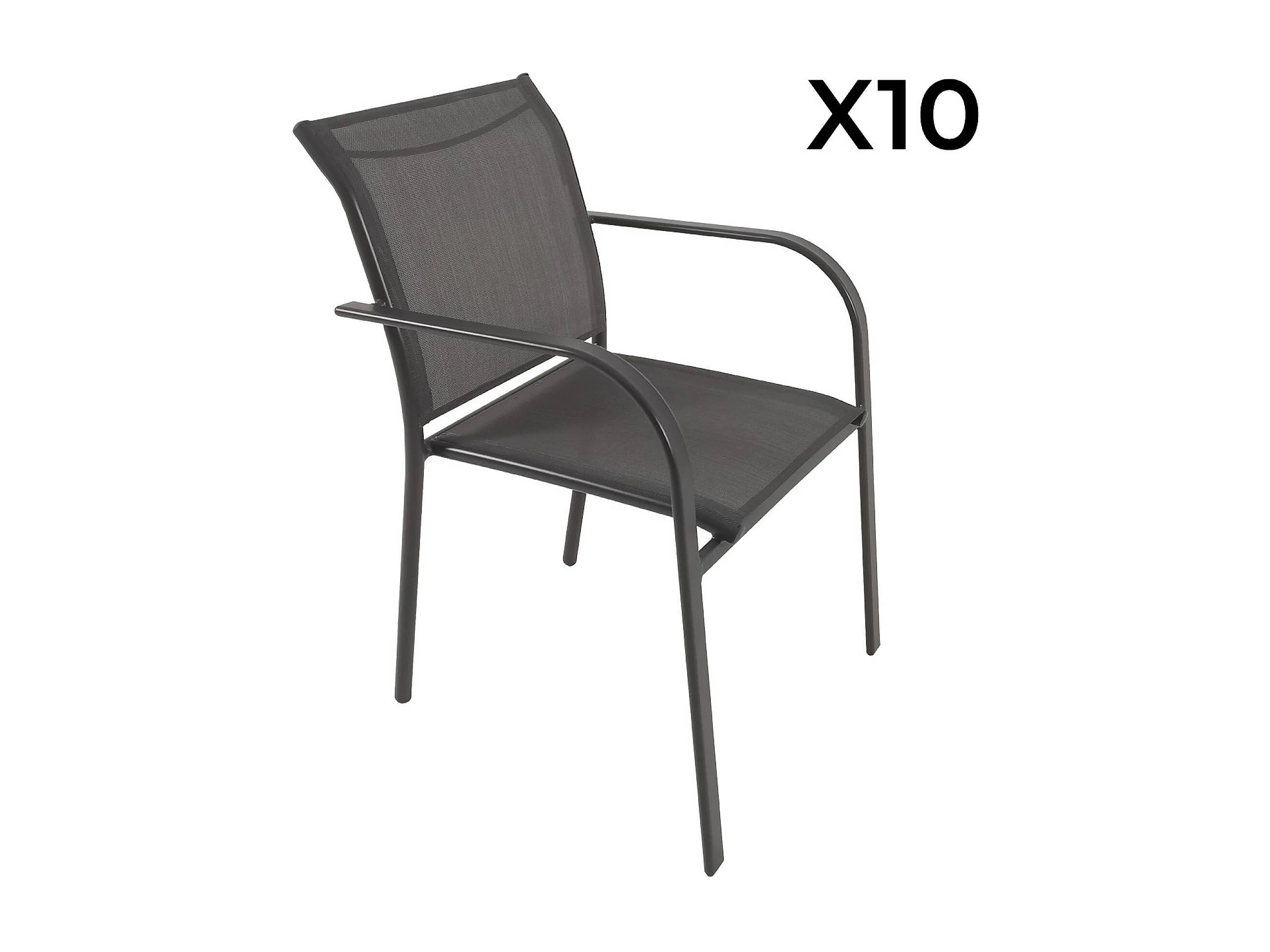 Table de jardin extensible aluminium + 10 assises anthracite - Elora/Amara