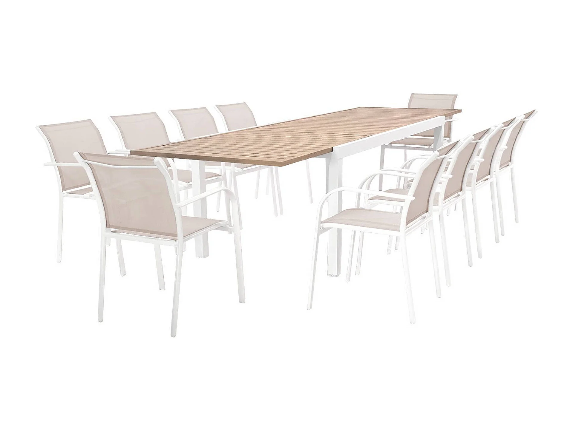 Table de jardin extensible aluminium + 10 assises blanc - Elora / Amara