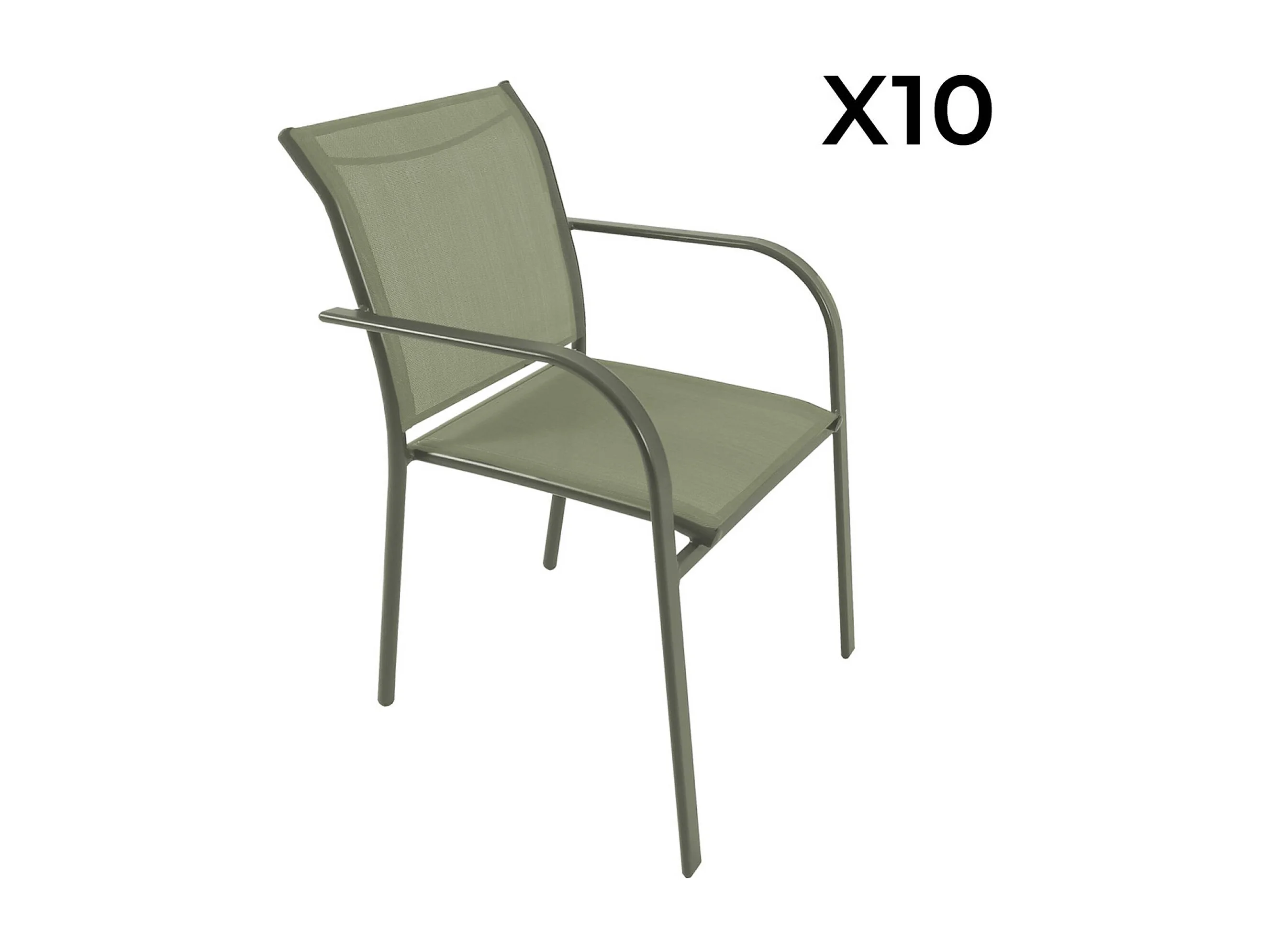 Table de jardin extensible aluminium + 10 assises kaki - Elora/Amara