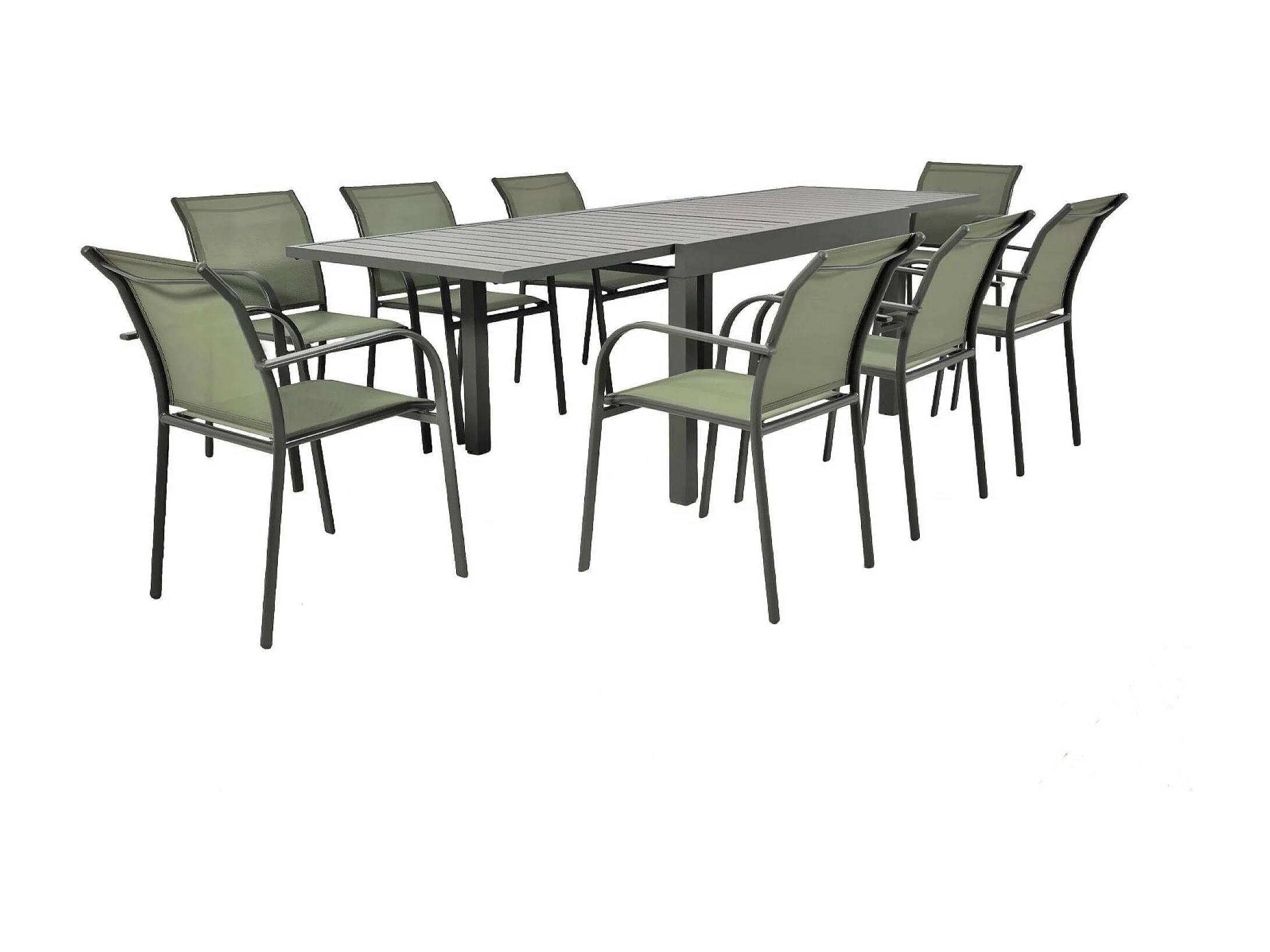 Table de jardin extensible aluminium kaki. 8 places. 135 / 270 x 90 x 75 cm