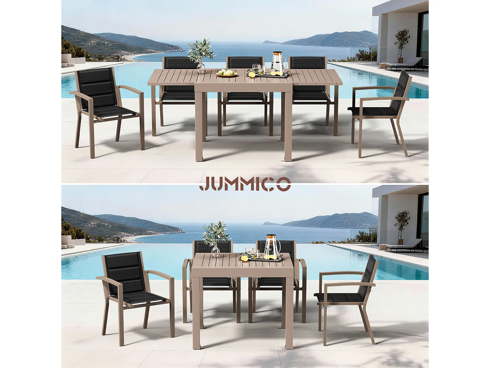 Table de Jardin Extensible en Aluminium | 200kg Fermé / 150kg Ouvert | 4-8 Personnes, Stable & Résistante, Marron