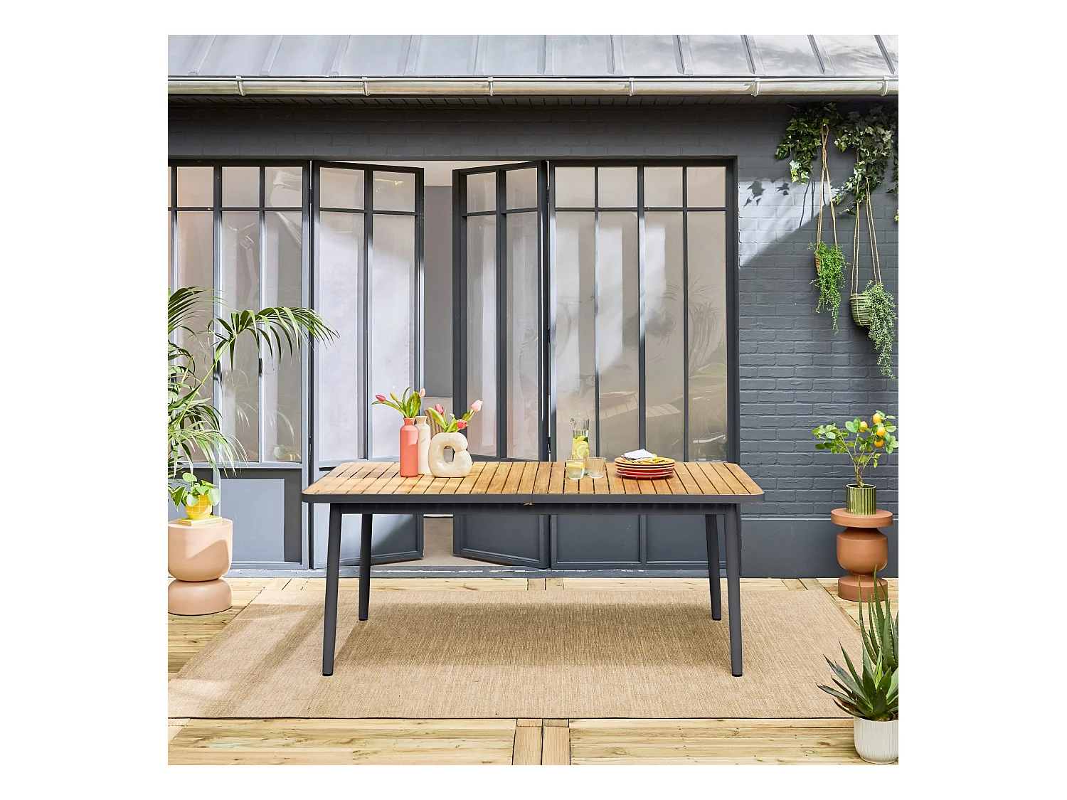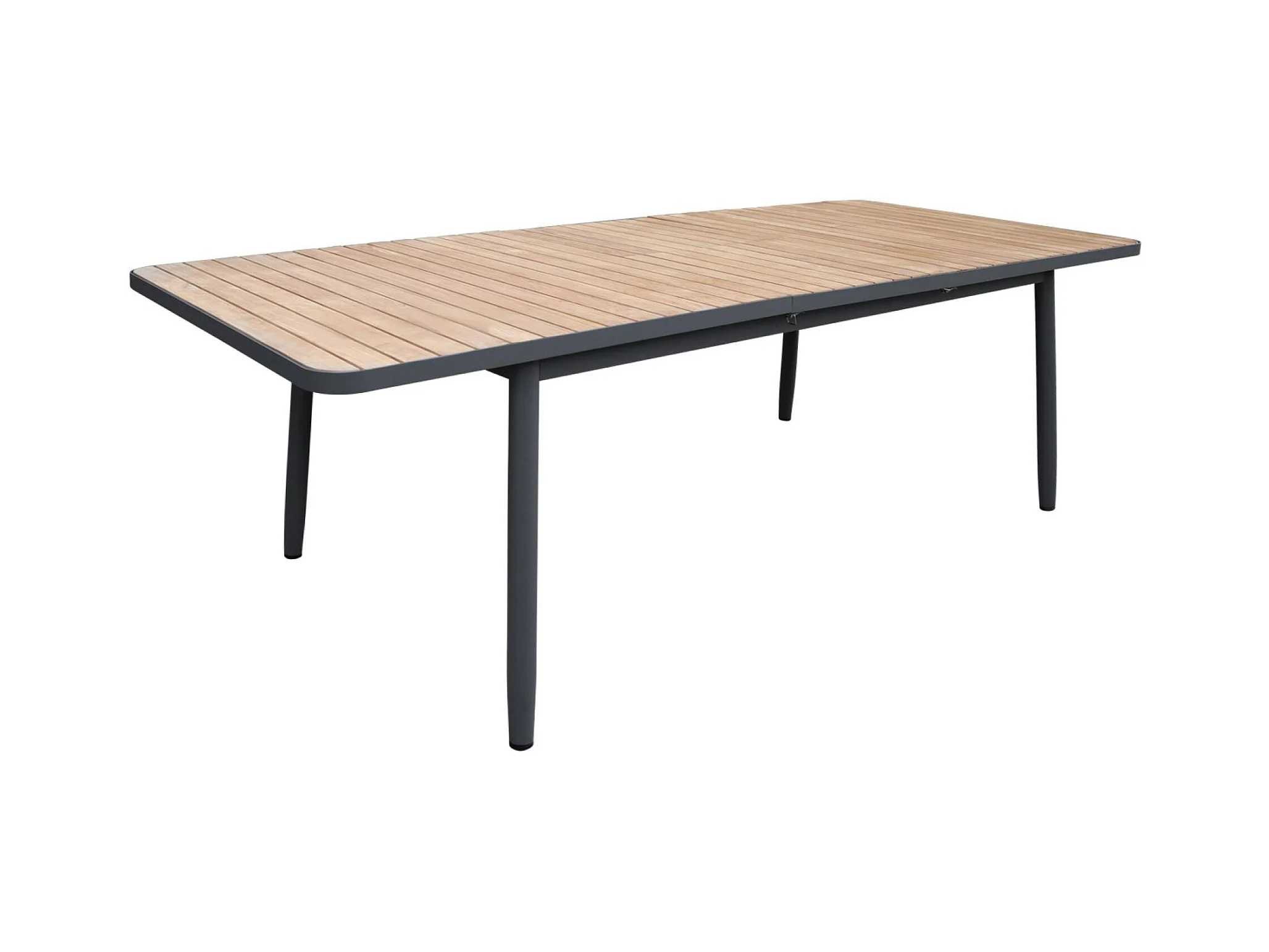 Table de jardin extensible en bois teck. structure aluminium anthracite. 8 places