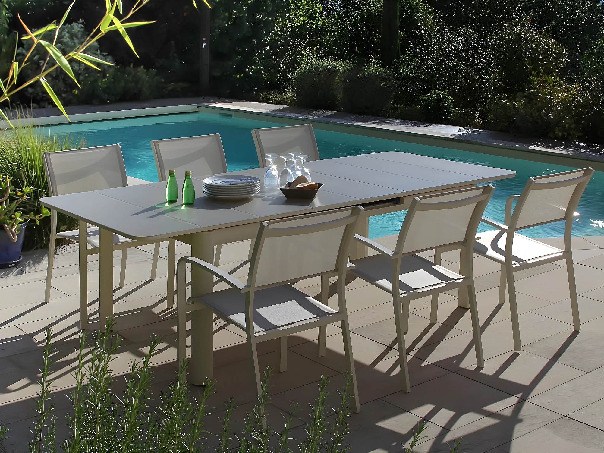 Table de jardin extensible, rectangulaire en aluminium Milos Ivoire - 8/10 places - Jardiline