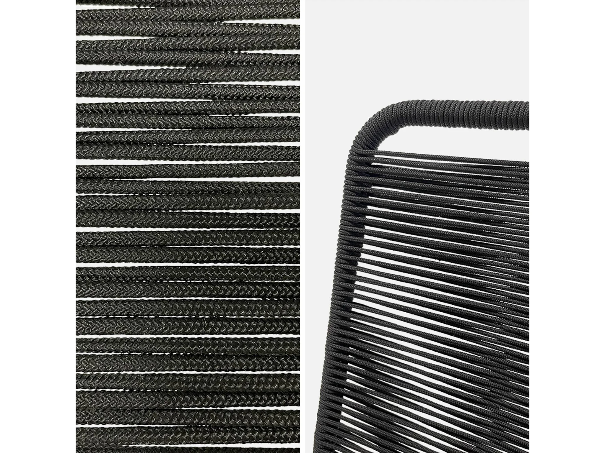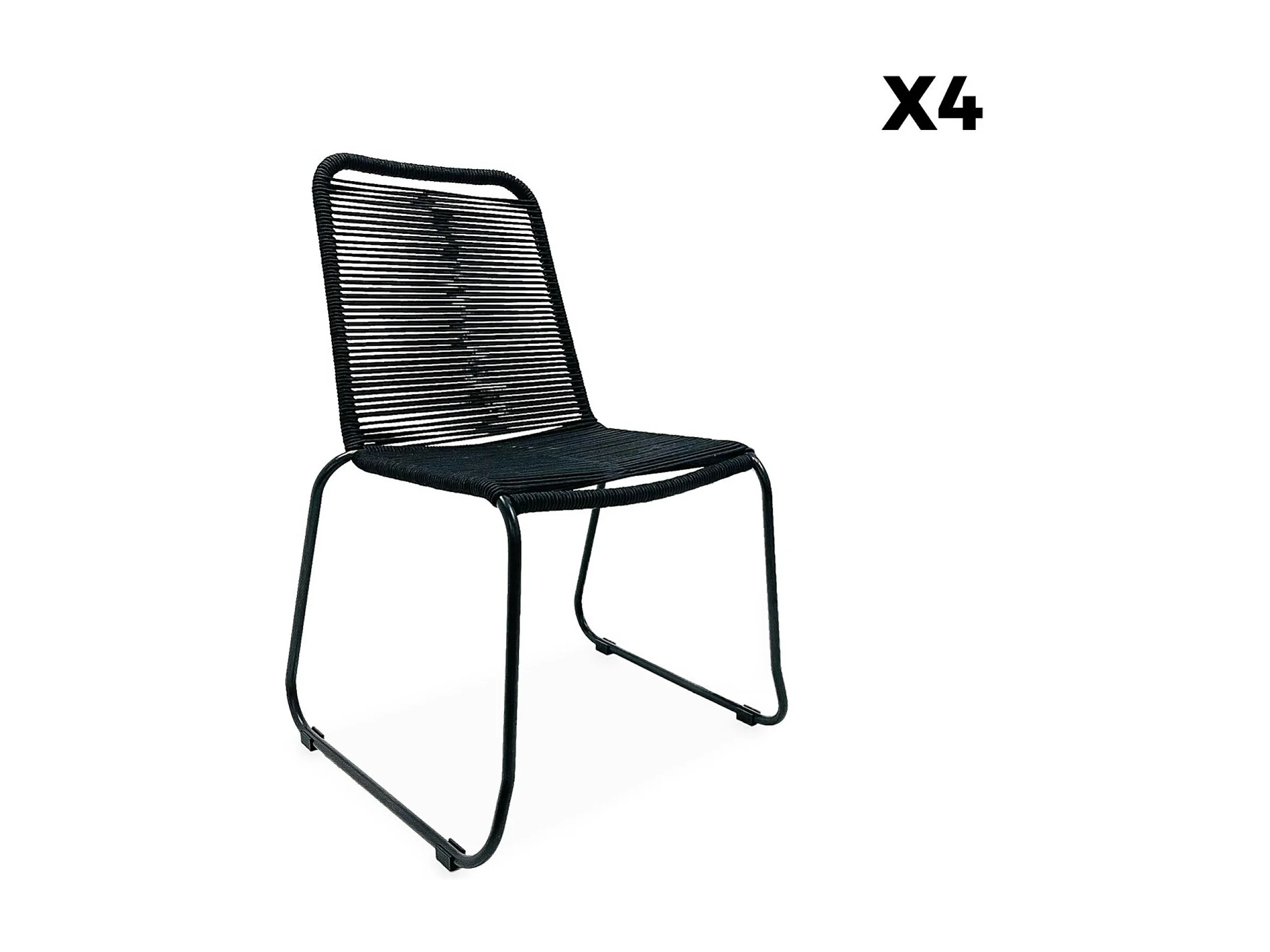 Table de jardin MARINGA bois et métal ivoire 150cm + 4 chaises de jardin en corde noire BRASILIA. empilables