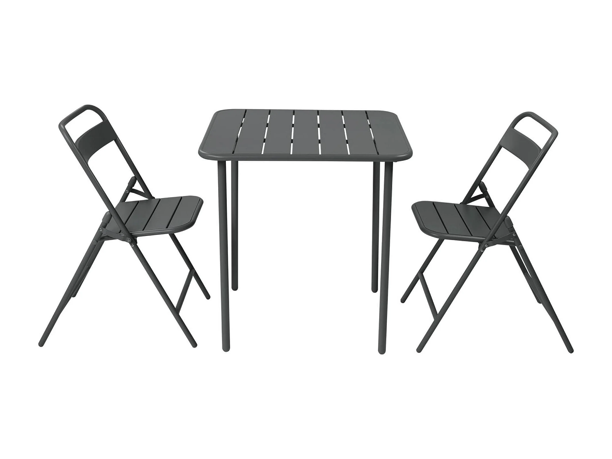 Ensemble table de jardin pliante et 2 chaises acier gris - Palavas