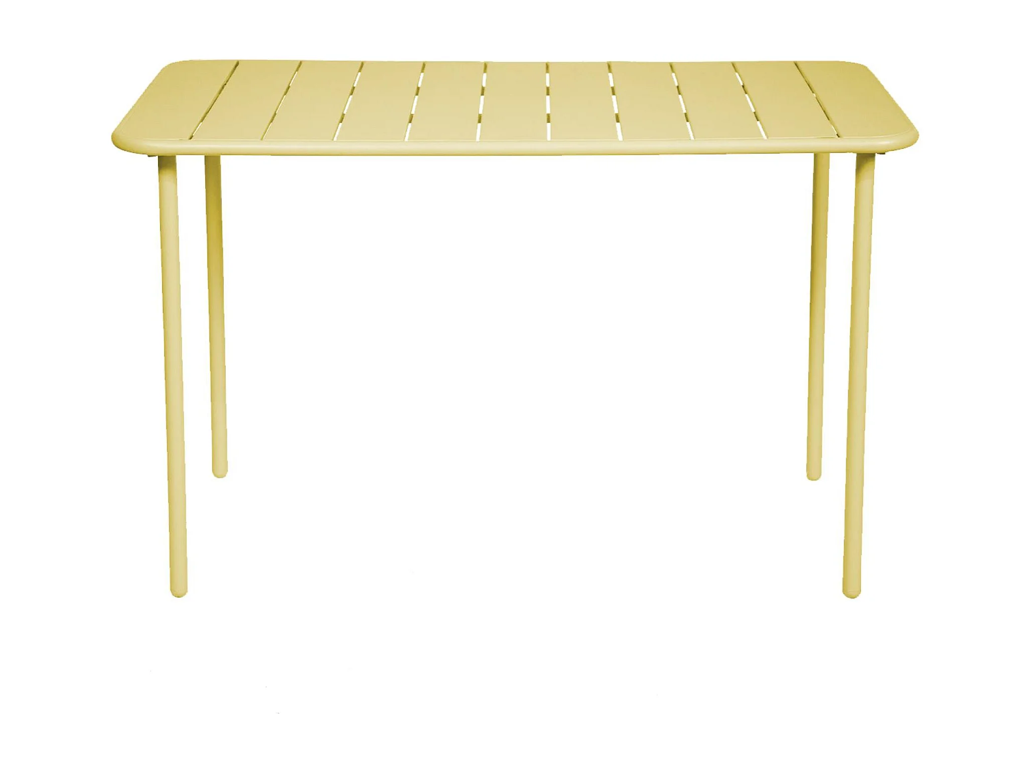 Table de jardin métal + 4 assises jaune en acier. Amelia. 120 x 70 x 72.5 cm