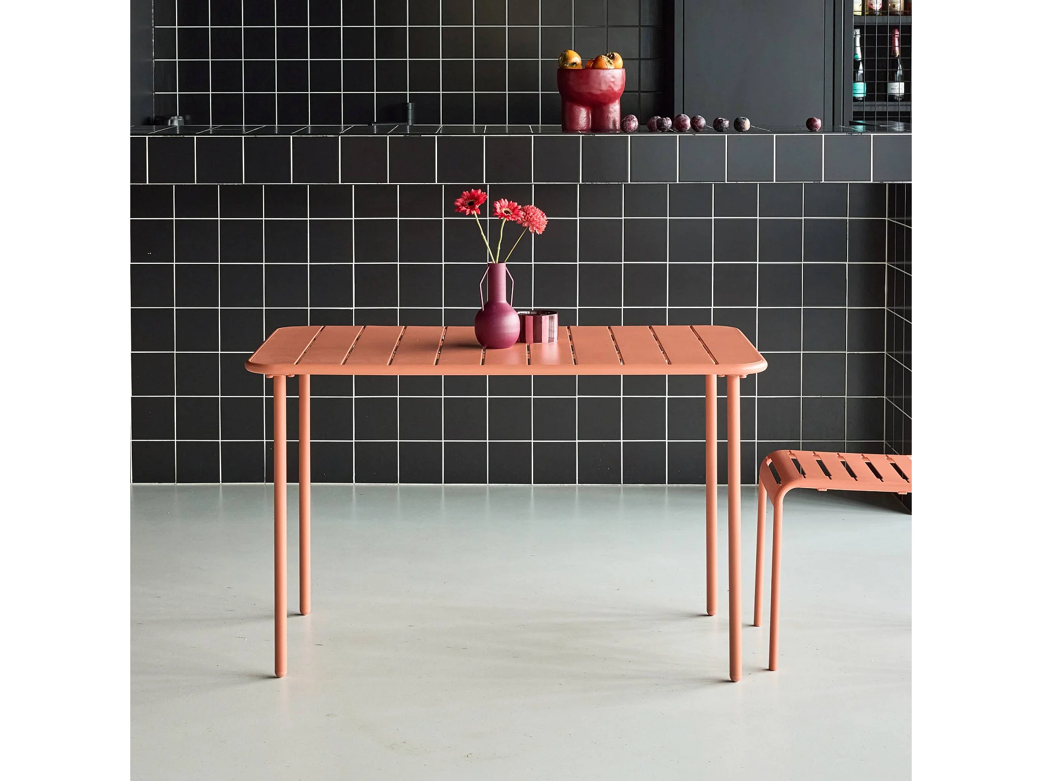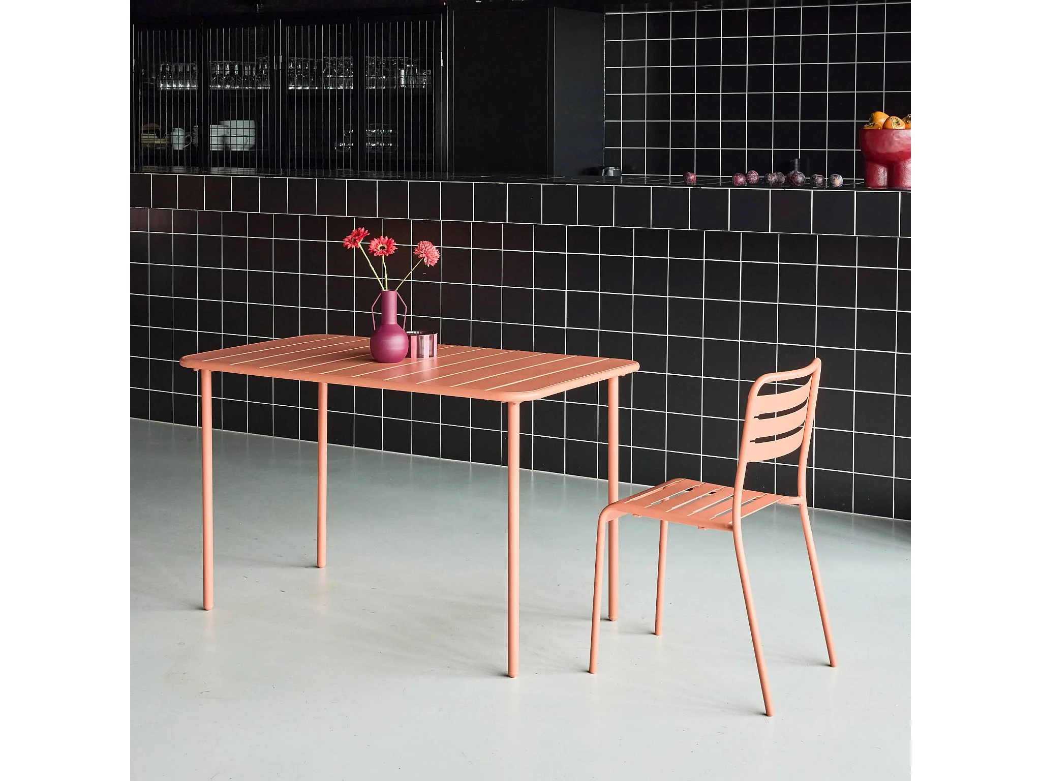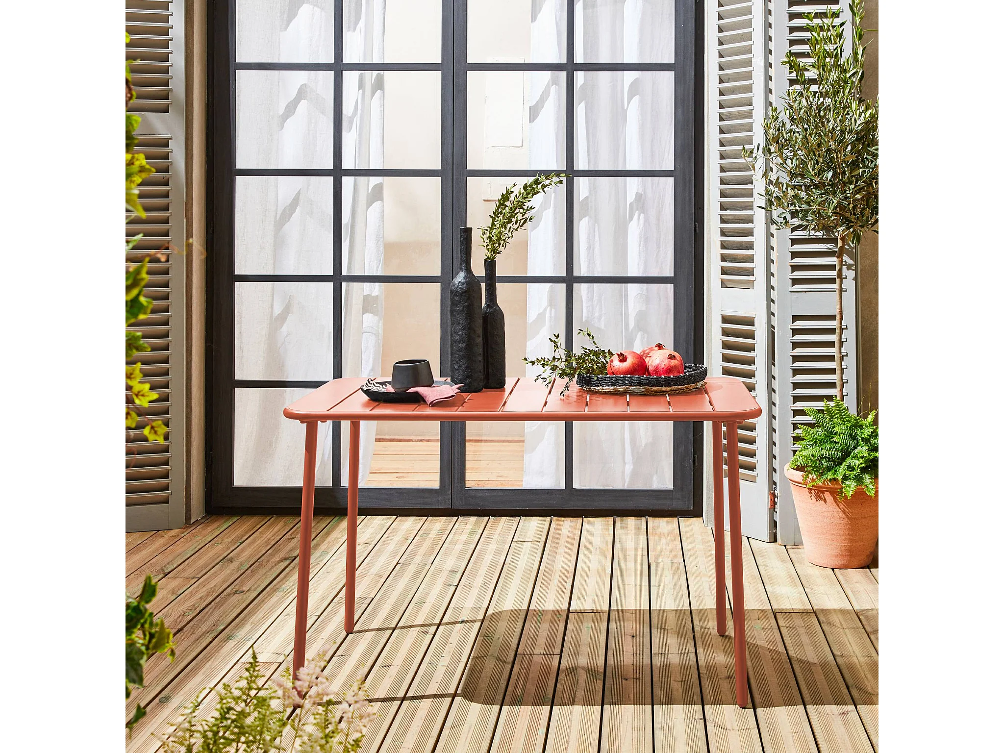 Table de jardin métal 4 places. tomette. Amelia. 120x70cm. traitement antirouille. lattes et bords arrondis