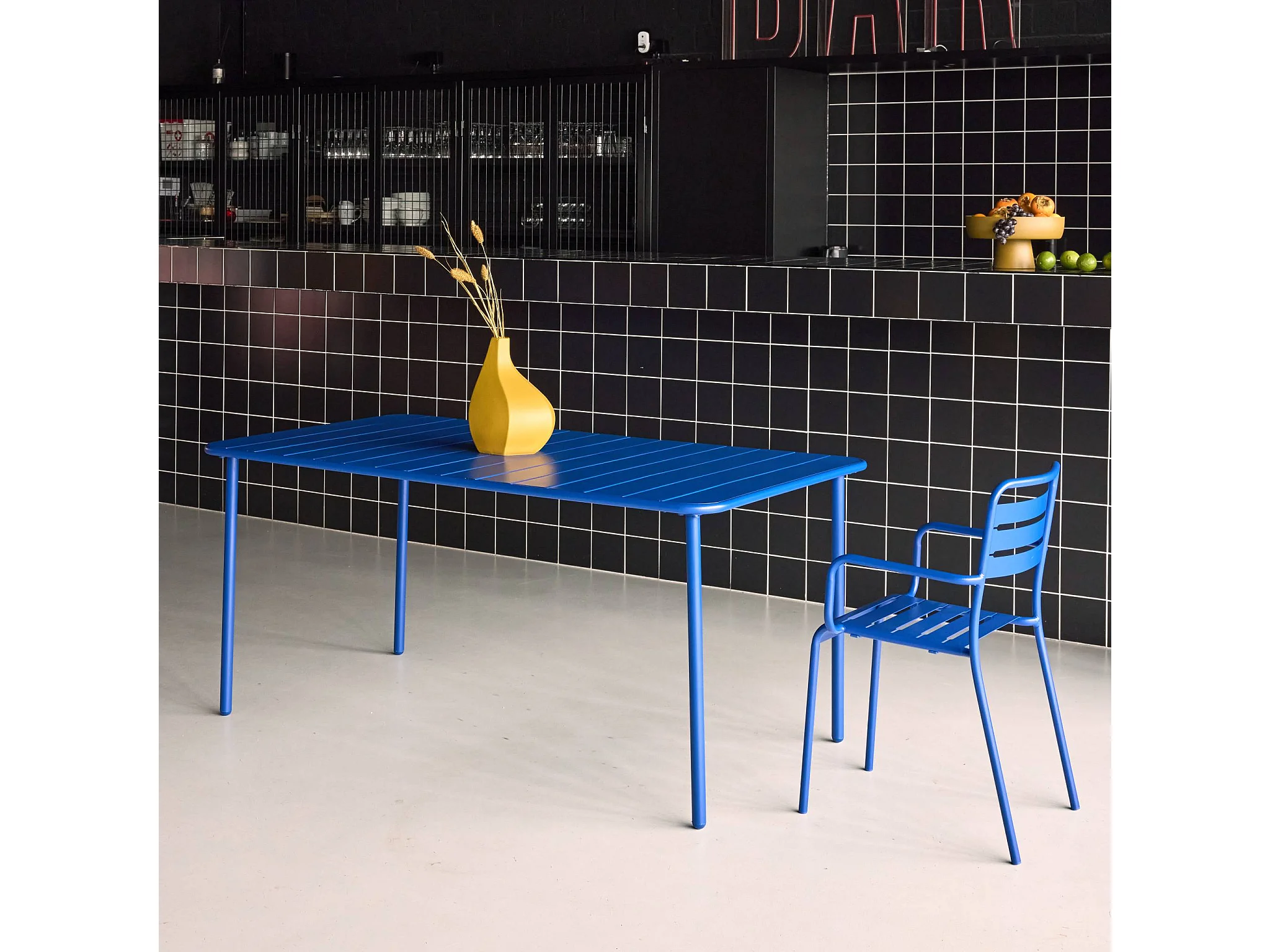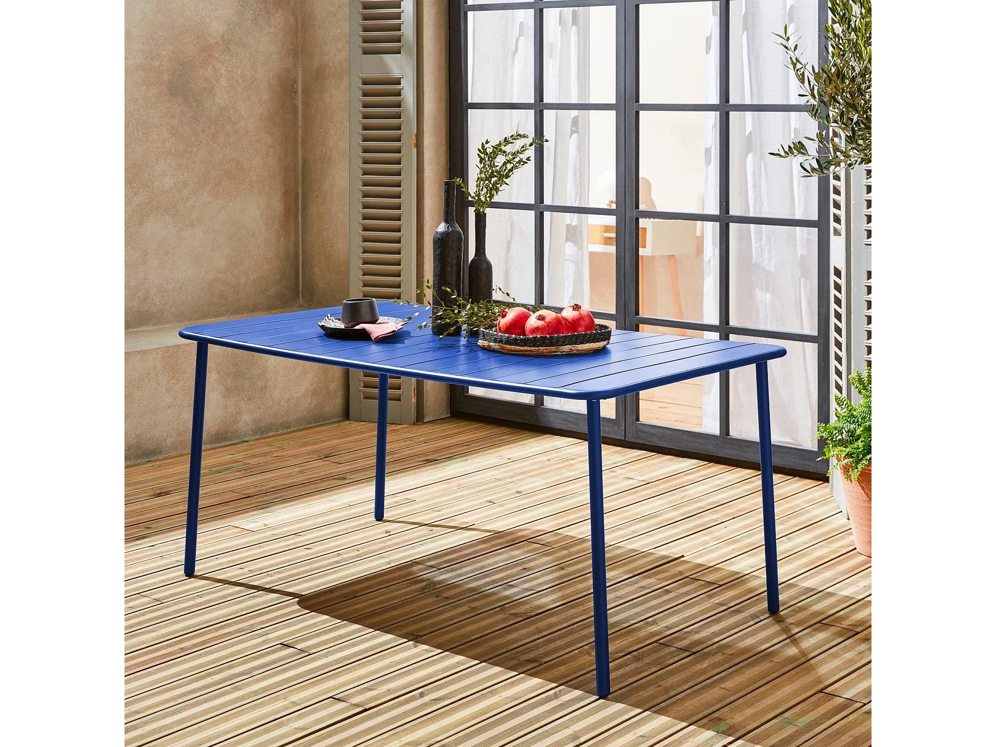 Table de jardin métal 6-8 places. bleu électrique. Amelia. 160x90x72.5cm