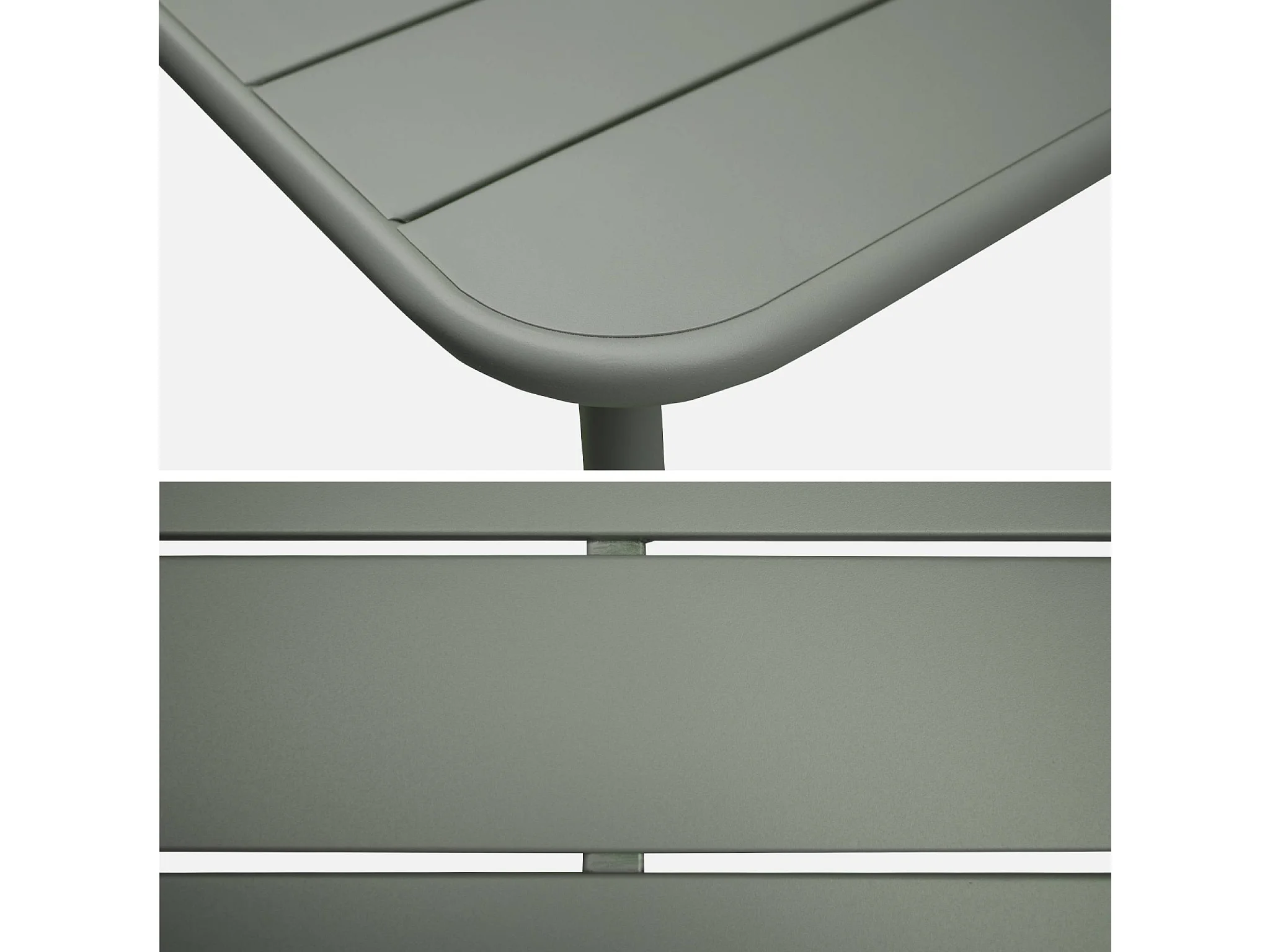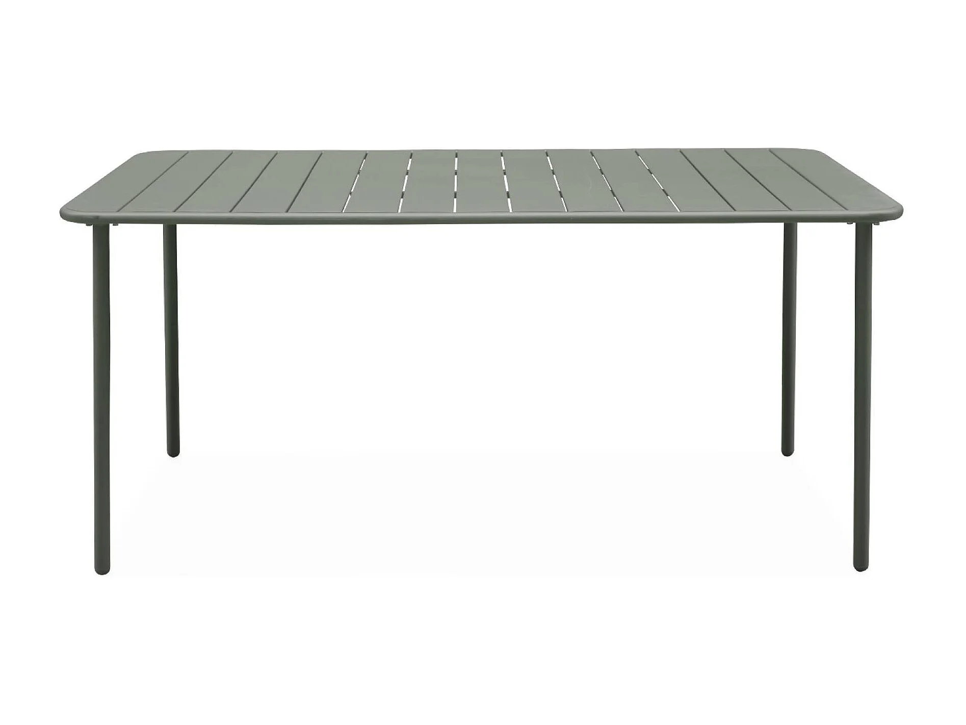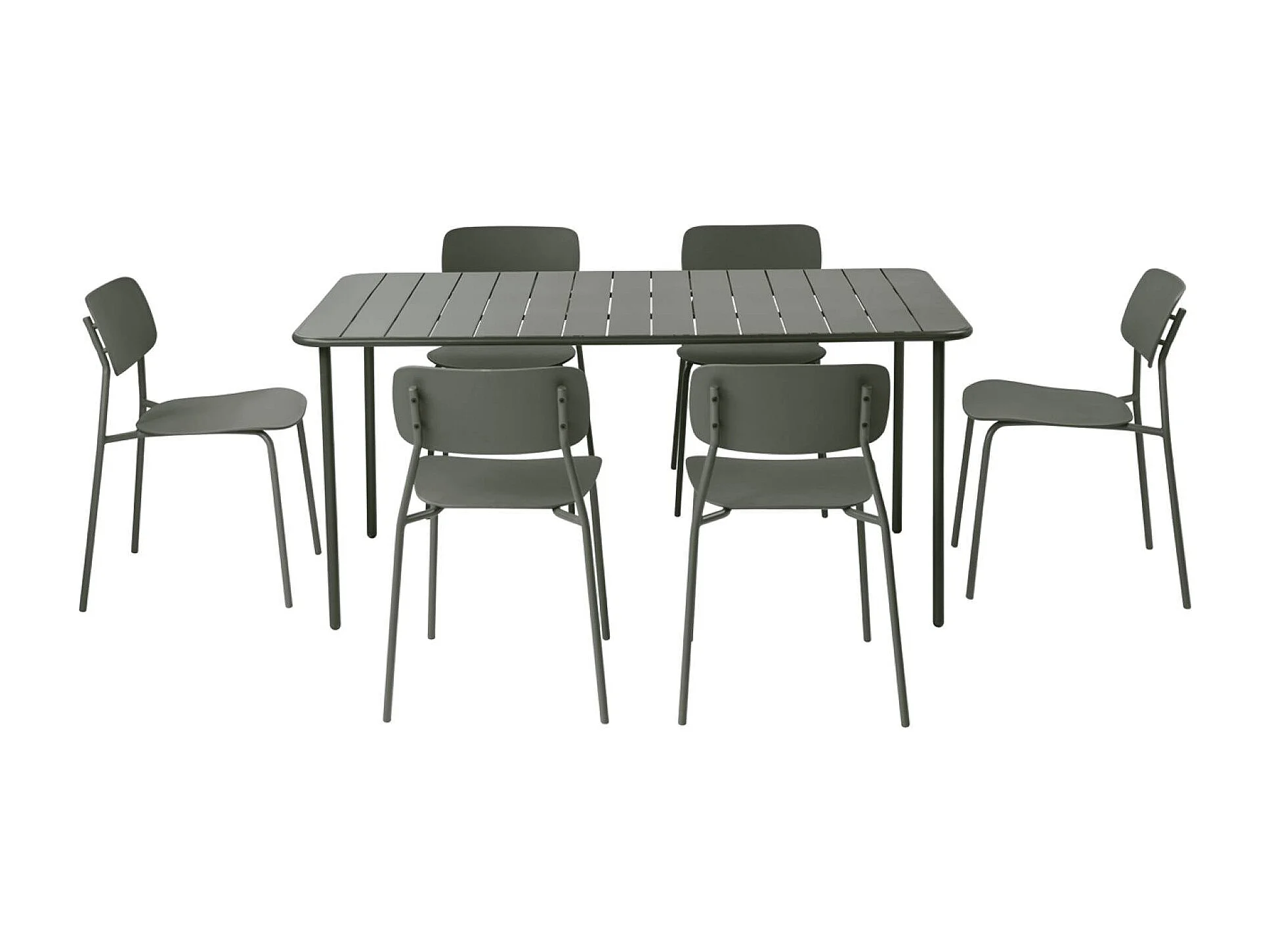 Table de jardin métal + 6 assises kaki. Amélia + Liva 160 x 90 x 72.5cm
