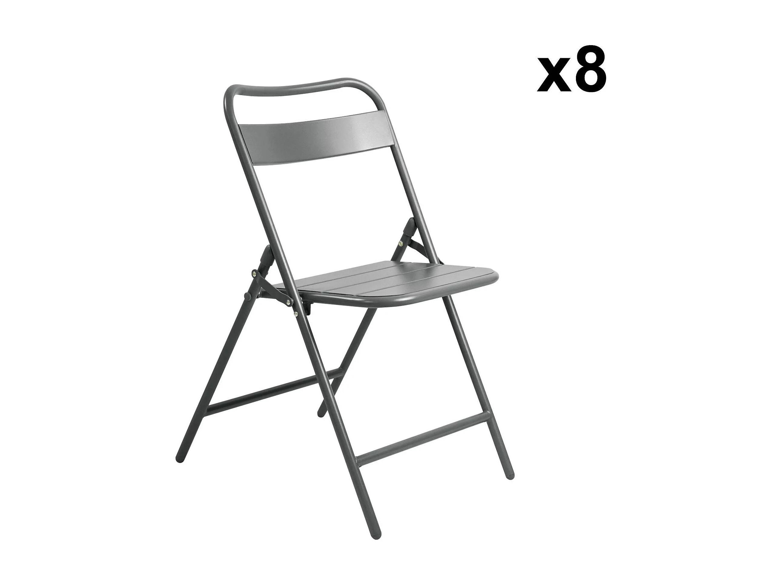 Table de jardin métal + 8 assises anthracite. Amelia 160 x 90 x H 72.5cm