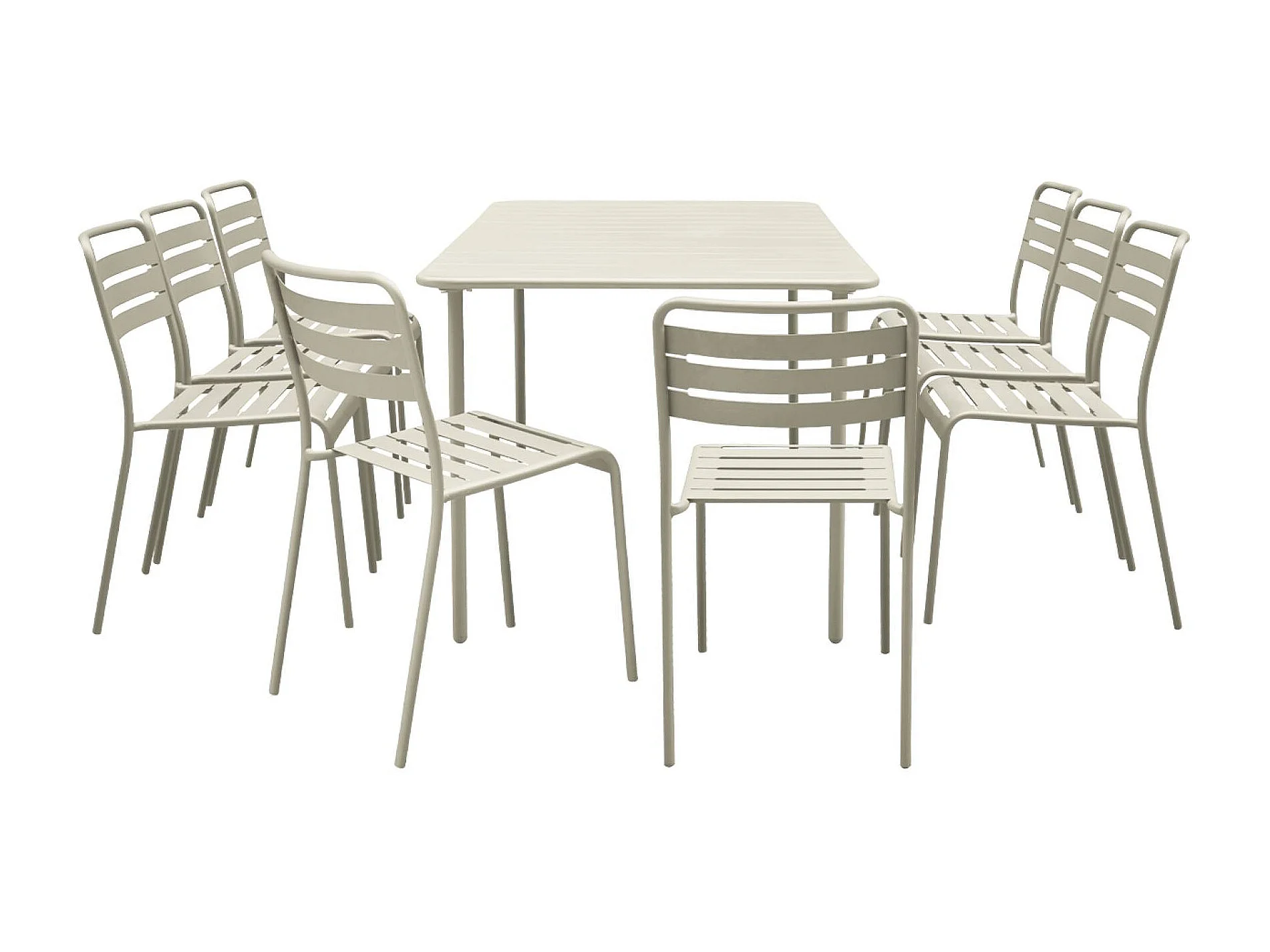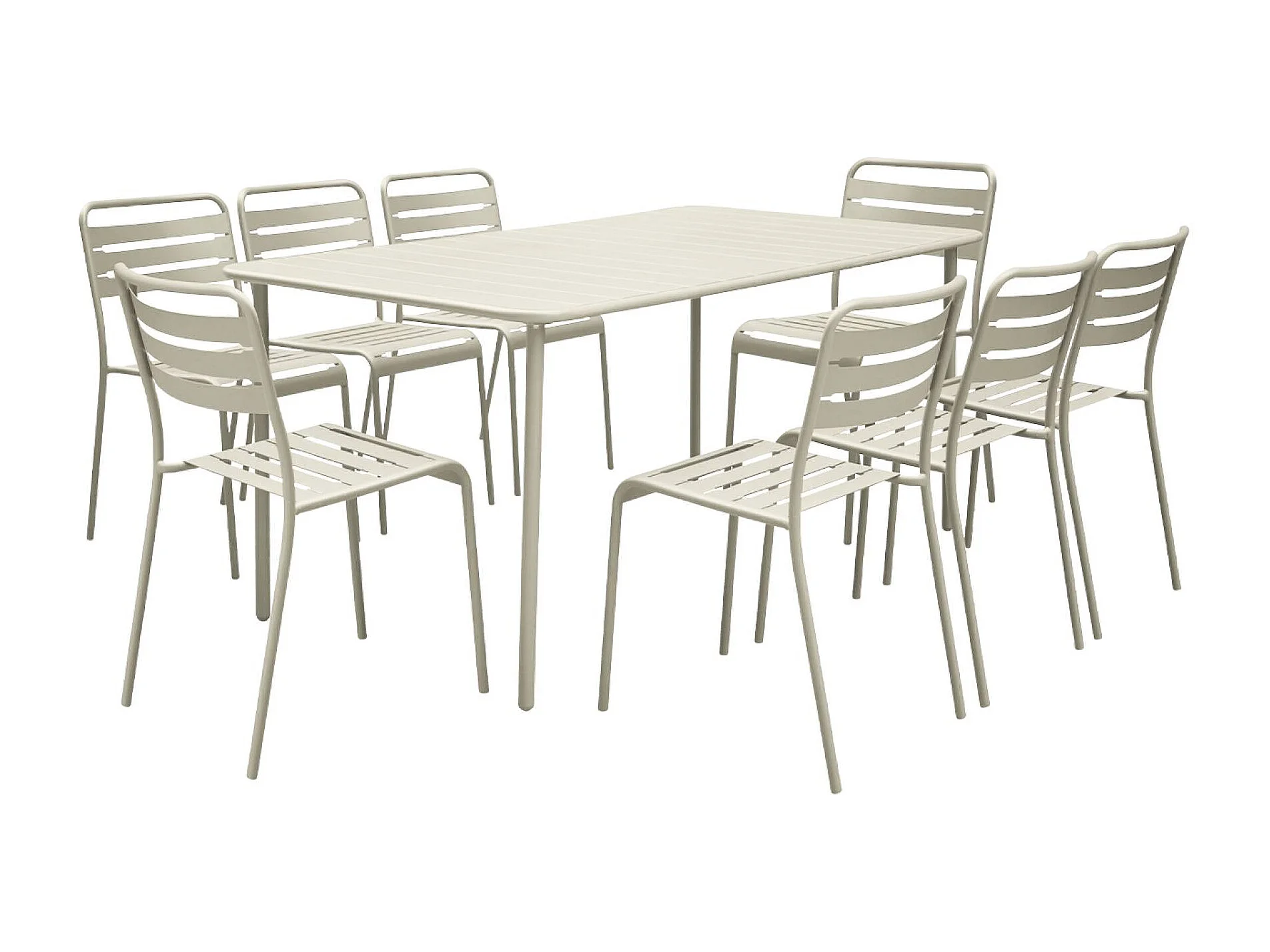 Table de jardin métal + 8 assises beige traitement antirouille. lattes et bords arrondis
