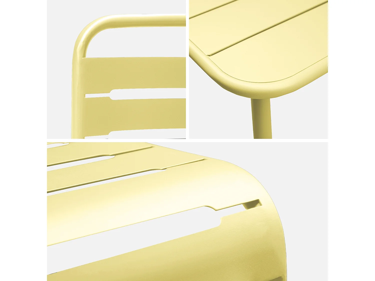 Table de jardin métal + 8 assises jaune traitement antirouille. lattes et bords arrondis